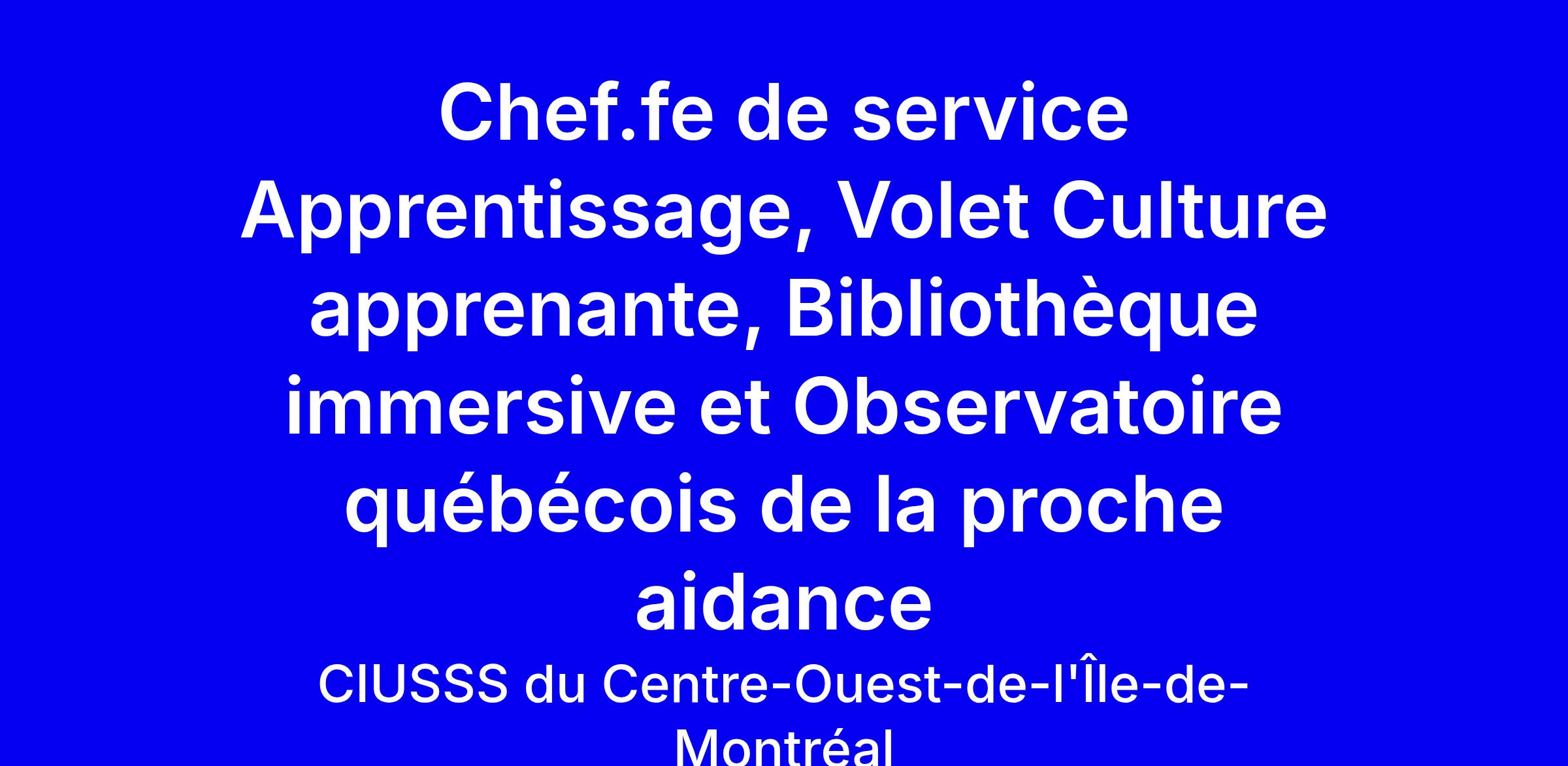 Chef.fe de service Apprentissage, Volet Culture apprenante, Bibliothèque immersive et Observatoire québécois de la proche aidance