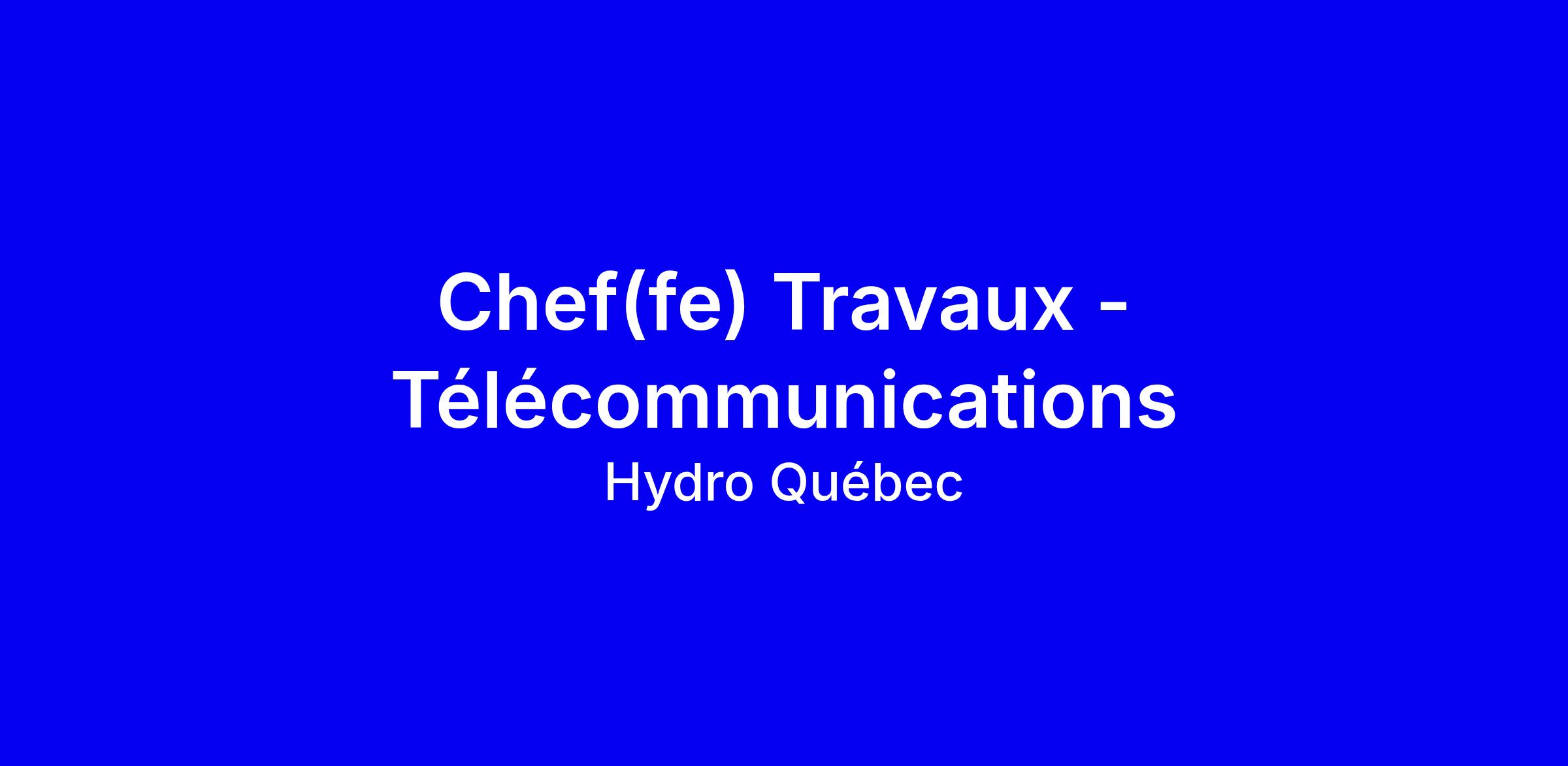 Hydro-Québec recherche un(e) Chef(fe) Travaux en télécommunications pour Montréal, poste à temps plein sur site avec une affectation temporaire et une durée indéterminée. Vous dirigerez la gestion des mandats en respect des plans et devis, coordonnerez la logistique des chantiers, gérerez les contrats et les sous‑traitants et assurerez le respect des normes de sécurité, de qualité et environnementales. Exigences: diplôme collégial pertinent (un bac est un atout), minimum 10 ans d’expérience en construction ou télécommunications et en gestion de projets et du personnel, maîtrise des outils MS Office et de la lecture de plans, permis de conduire classe 5 et déplacements fréquents dans la province. Pour postuler, adaptez votre CV avec des résultats mesurables, mettez en avant leadership, gestion du changement et sécurité, et préparez des exemples concrets démontrant votre capacité à livrer des projets complexes et à collaborer avec les parties prenantes; mentionnez votre disponibilité et votre aptitude au travail d’équipe et soyez prêt à des vérifications HQ-SC-N-1001 et Mintz Vérifications mondiales si retenu.