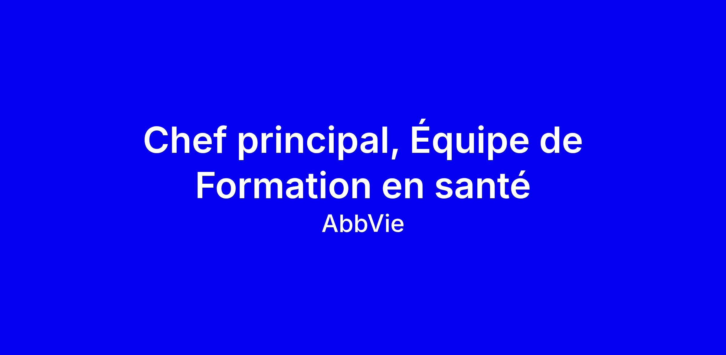 Le poste de Chef principal, Équipe de Formation en santé chez AbbVie à Montréal consiste à diriger et encadrer une équipe de Chefs Formation en santé au sein de l’Institut AbbVie de formation en santé, en favorisant une culture inclusive et une haute performance. Dans ce rôle clé, vous ferez évoluer la vision stratégique de la formation en santé, assurerez l’alignement avec les priorités organisationnelles et les besoins d’apprentissage des professionnels, et piloterez l’innovation et la transformation numérique. Vous veillerez au respect des normes de conformité et d’éthique, gérerez les budgets et les délais, et démontrerez l’impact par des données et analyses. Exigences: Baccalauréat en sciences ou domaine lié, 8 ans d’expérience, leadership avéré, capacité à influencer, anglais avancé indispensable pour collaborer avec les régions anglophones, tout en privilégiant le contexte francophone du Québec.