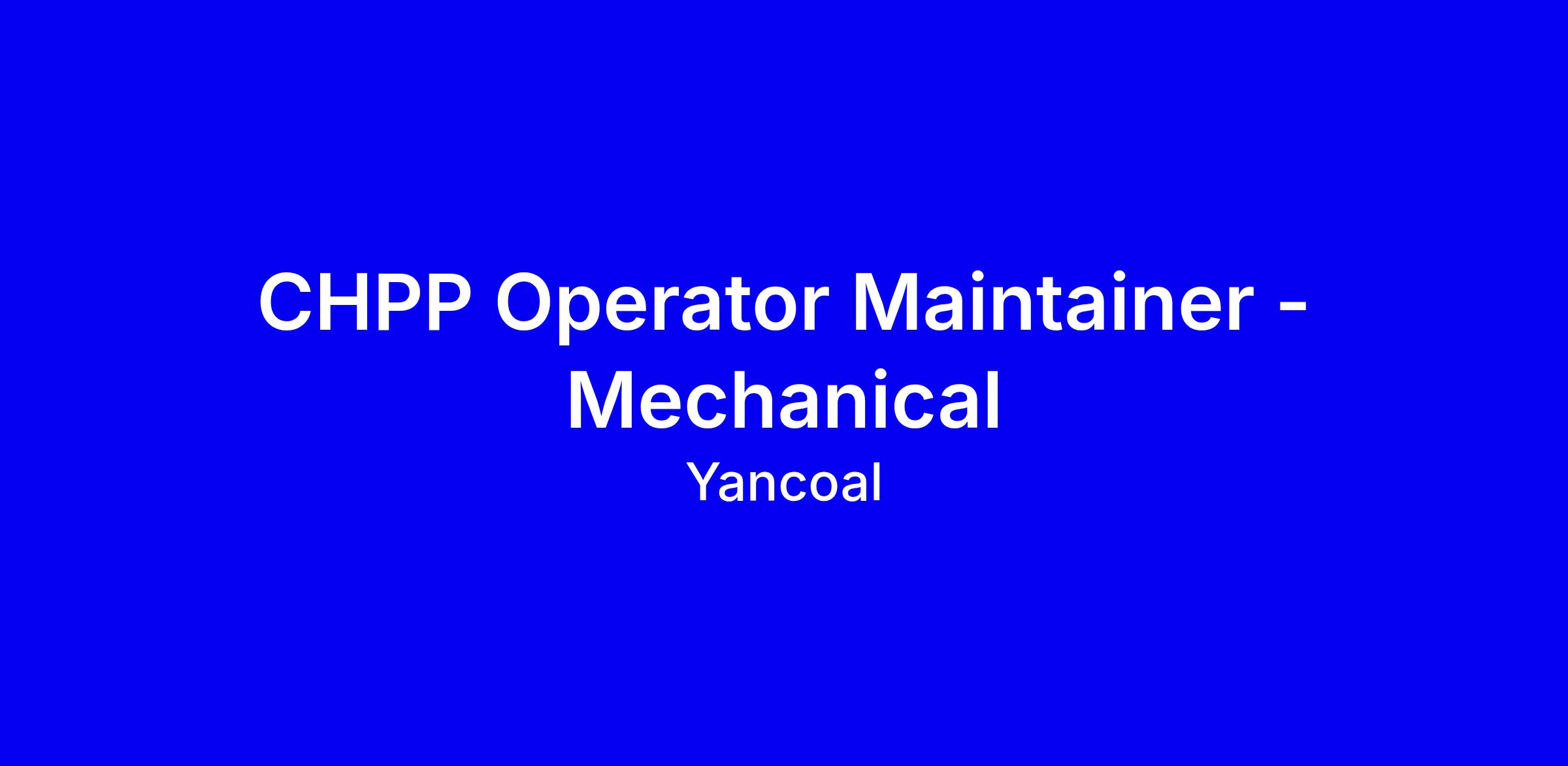 We are currently recruiting for a CHPP Operator Maintainer - Mechanical. This is an excellent opportunity for a skilled operator‑maintainer to join a supportive team, contribute to safe and efficient coal processing.