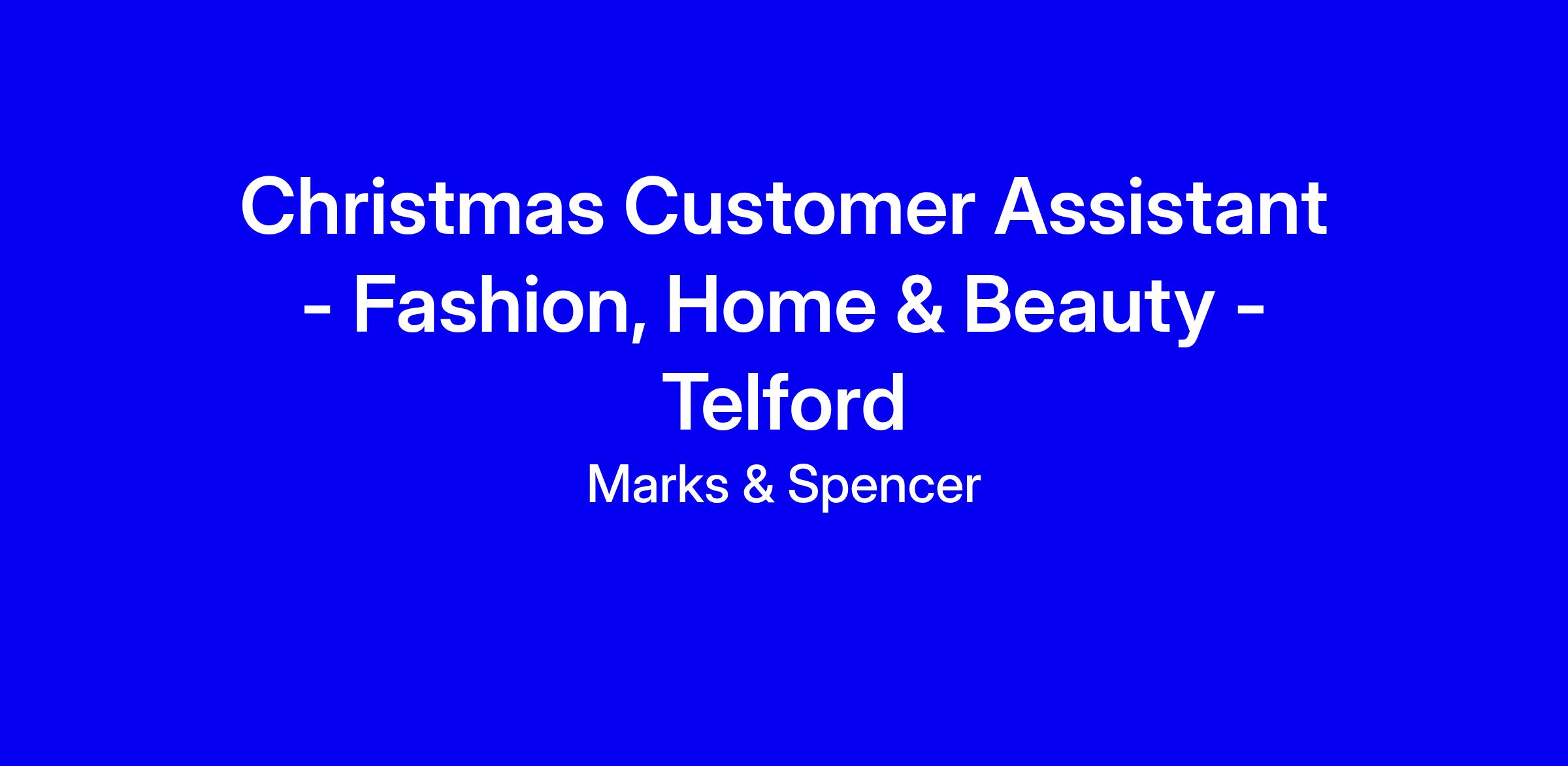 Marks & Spencer in Telford is hiring Christmas Customer Assistants for the Clothing Home and Beauty department on a part-time, on-site basis. You’ll champion our products and deliver excellent service, using digital tools like the Sparks App to help customers. Shifts run on a two-week pattern with weekend and weekday slots, and during the weeks of 14 and 21 December hours may rise to full time. Core duties include serving customers, stocking shelves, meeting daily sales priorities, and building product knowledge as part of a flexible, inclusive team. In your application, emphasize strong customer service, digital confidence, adaptability, teamwork, and peak-week availability while noting any accessibility needs.