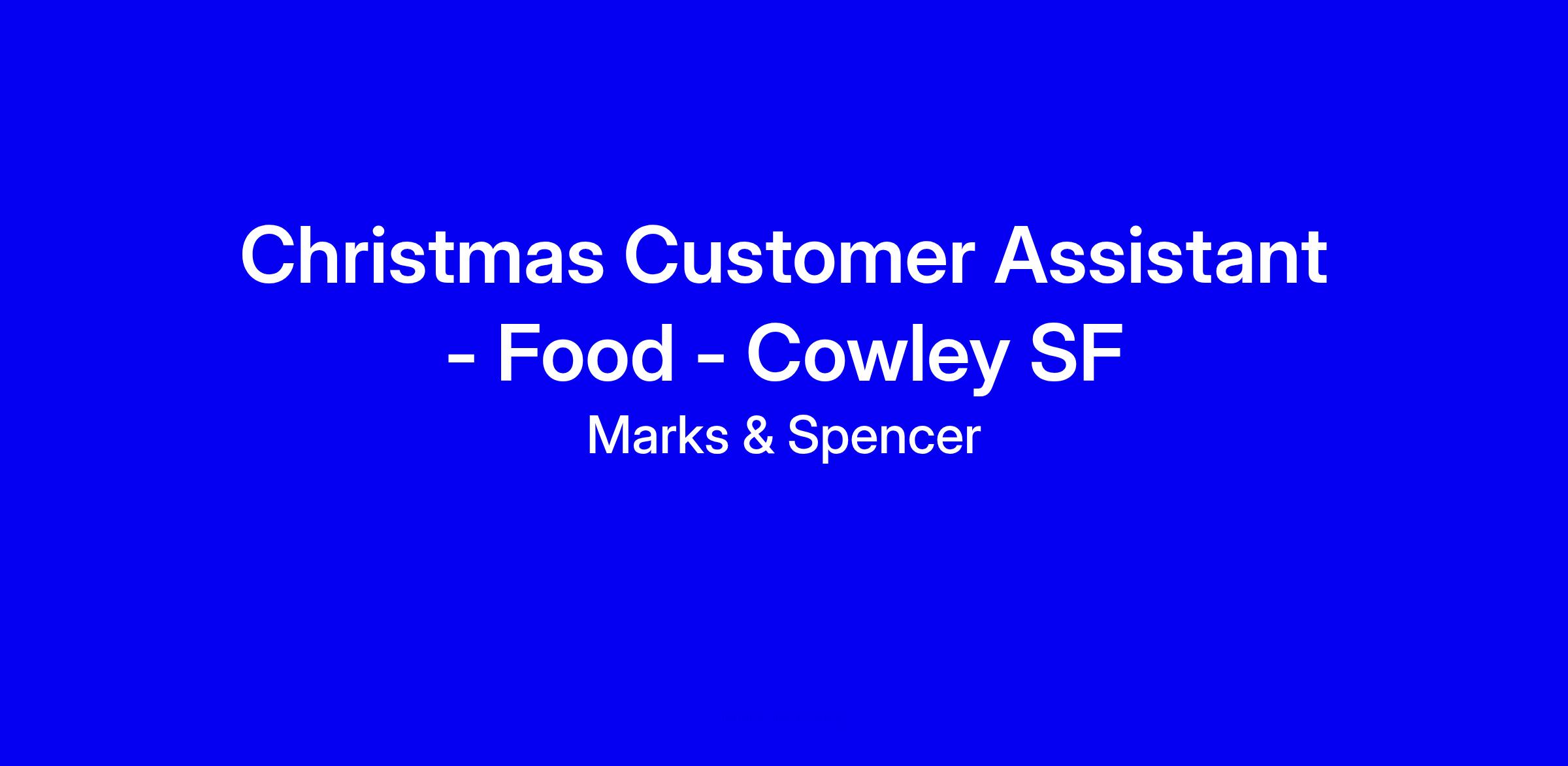 Marks & Spencer is hiring a Christmas Food Customer Assistant at Cowley SF for full-time, onsite work with shifts Tuesday to Saturday 13:30–21:30 and the prospect of extra hours during the weeks beginning 14 and 21 December. You’ll be a brand ambassador for M&S Food, sharing knowledge and making every customer feel valued through exceptional service, while masterfully using digital tools like the Sparks App and in-store devices. Flexibility to work across store areas, strong teamwork, and a calm, customer-first approach are essential. To apply, tailor your CV to show standout service, product knowledge, digital confidence, and examples of handling peak periods; highlight availability for December and a proactive, inclusive mindset.