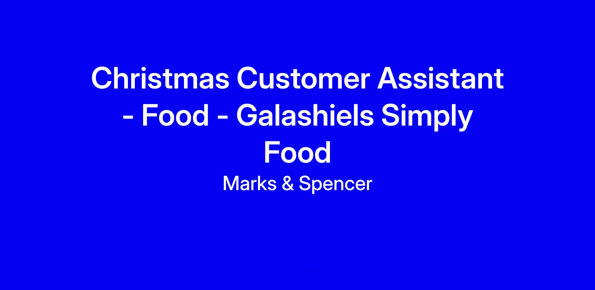 Marks & Spencer is recruiting a Christmas Customer Assistant in the Foods section at Galashiels Simply Food for part time on site. The role centers on delivering outstanding customer service, representing the M&S Food brand, and using the Sparks App to assist shoppers. You’ll work across store areas, keep shelves stocked, and help hit daily sales targets with a strong focus on teamwork and adaptability. Shifts run Week 1 11:00 to 15:00 and Week 2 11:00 to 15:00, with up to full time hours during the weeks of 14 and 21 December. To apply, tailor your CV to show customer focus, digital confidence, flexibility, and peak-week availability; include concrete examples of service excellence and a willingness to learn new tools. M&S supports inclusion and flexible working with adjustments on request.