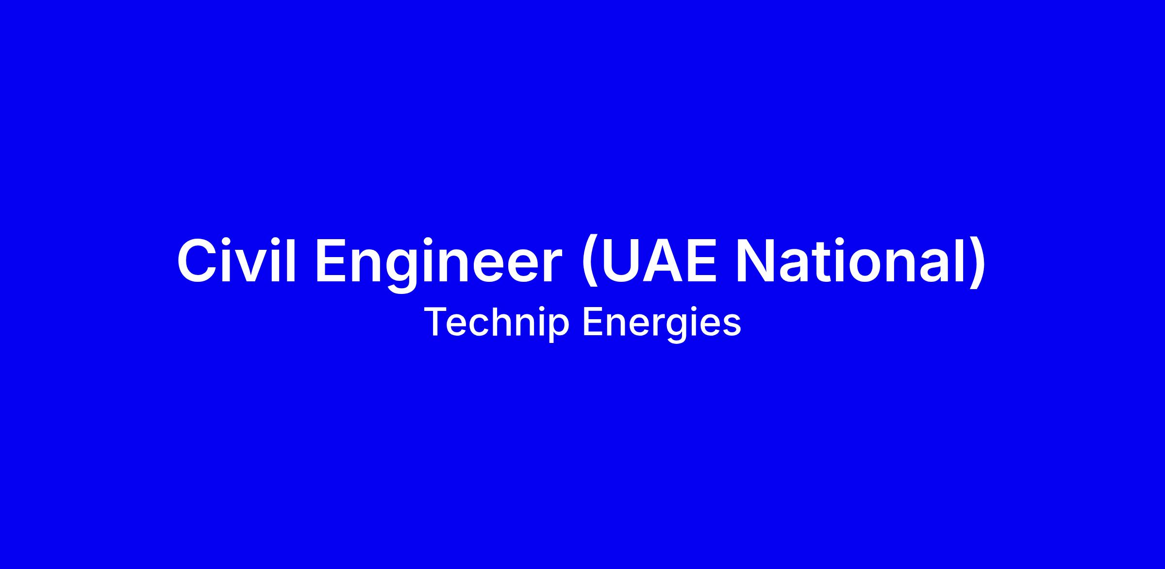Technip Energies is seeking a UAE National Civil Engineer to join the Abu Dhabi team as a site-based full-time role in Ruwais, reporting to the Head of Department. With 6 months to 1 year of civil site supervision experience, you will assist construction activities, ensure work aligns with drawings, specifications and safety standards, coordinate with contractors, monitor progress, support QA/QC and maintain records while upholding HSE. Qualifications include UAE National status, a Diploma or Bachelor in civil engineering (preferred), basic drawing literacy, and strong communication and teamwork. Start ASAP; tips for application: tailor your resume to highlight on-site supervision, safety, QA/QC and collaboration, show Emiratisation alignment, apply online, and monitor your candidate profile during the review.