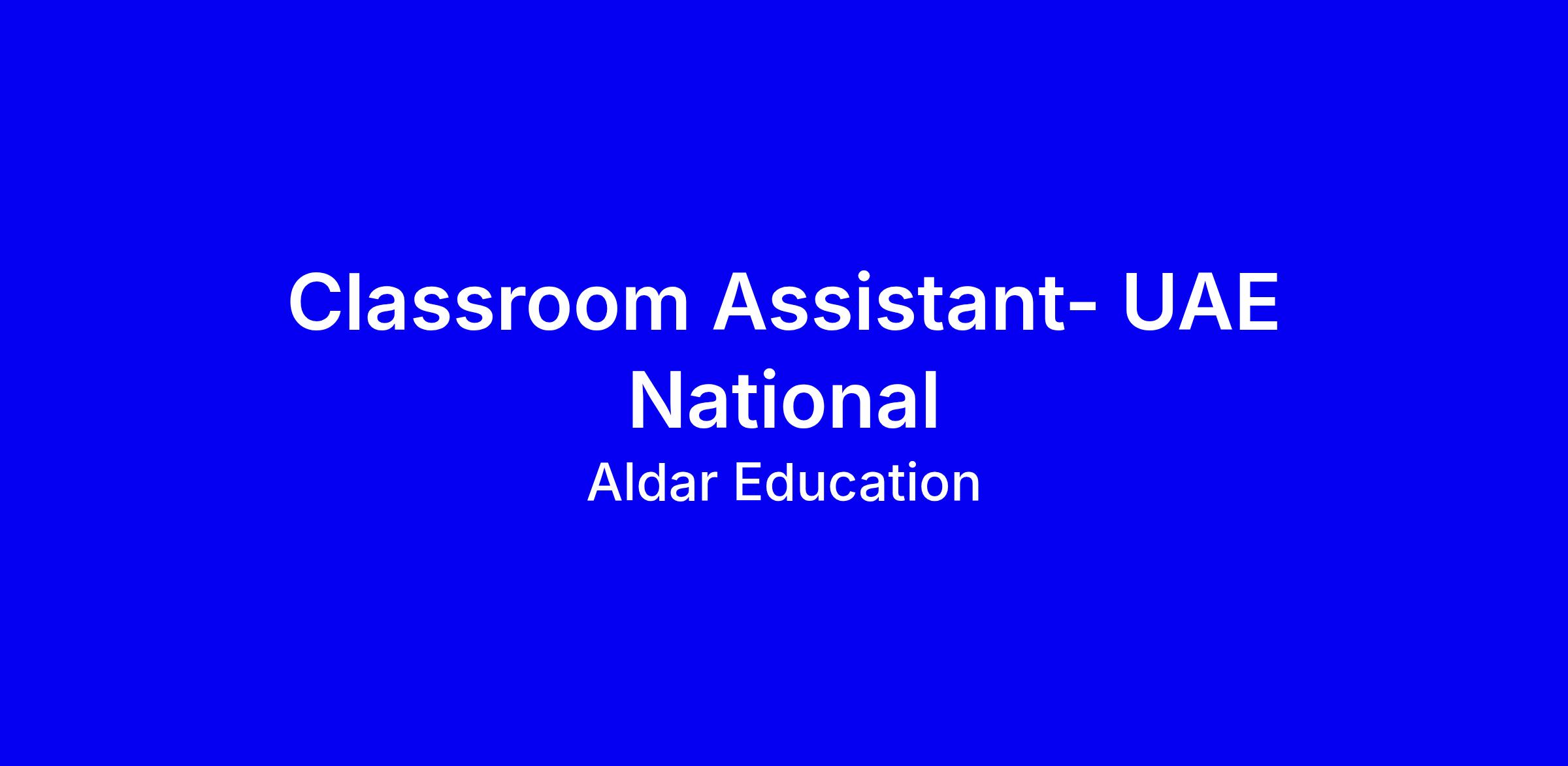 Aldar Education is currently hiring Classroom Assistants (UAE National)to start in March 2026. This is an exciting opportunity to join the highly successful Aldar family of schools and to help shape the future of Abu Dhabi’s leading school group.