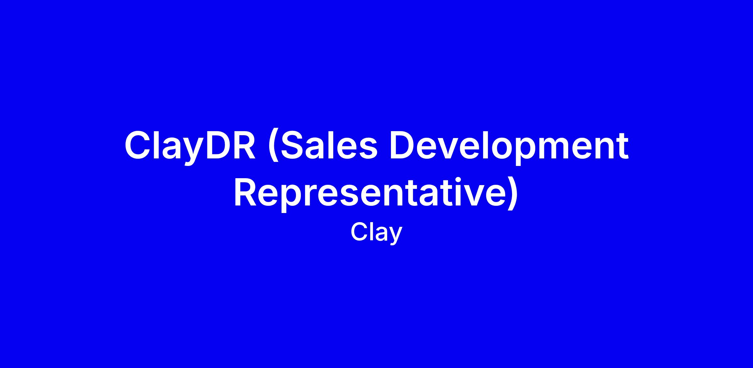 We're hiring our first Clay-DRs! A team of early-career sales professionals who convert high-volume demand into qualified opportunities and exceptional lead experiences. You'll partner with our Growth team, which sources leads and handles the manual work (using Clay!) so you can focus entirely on high-impact prospecting activities and conversations.