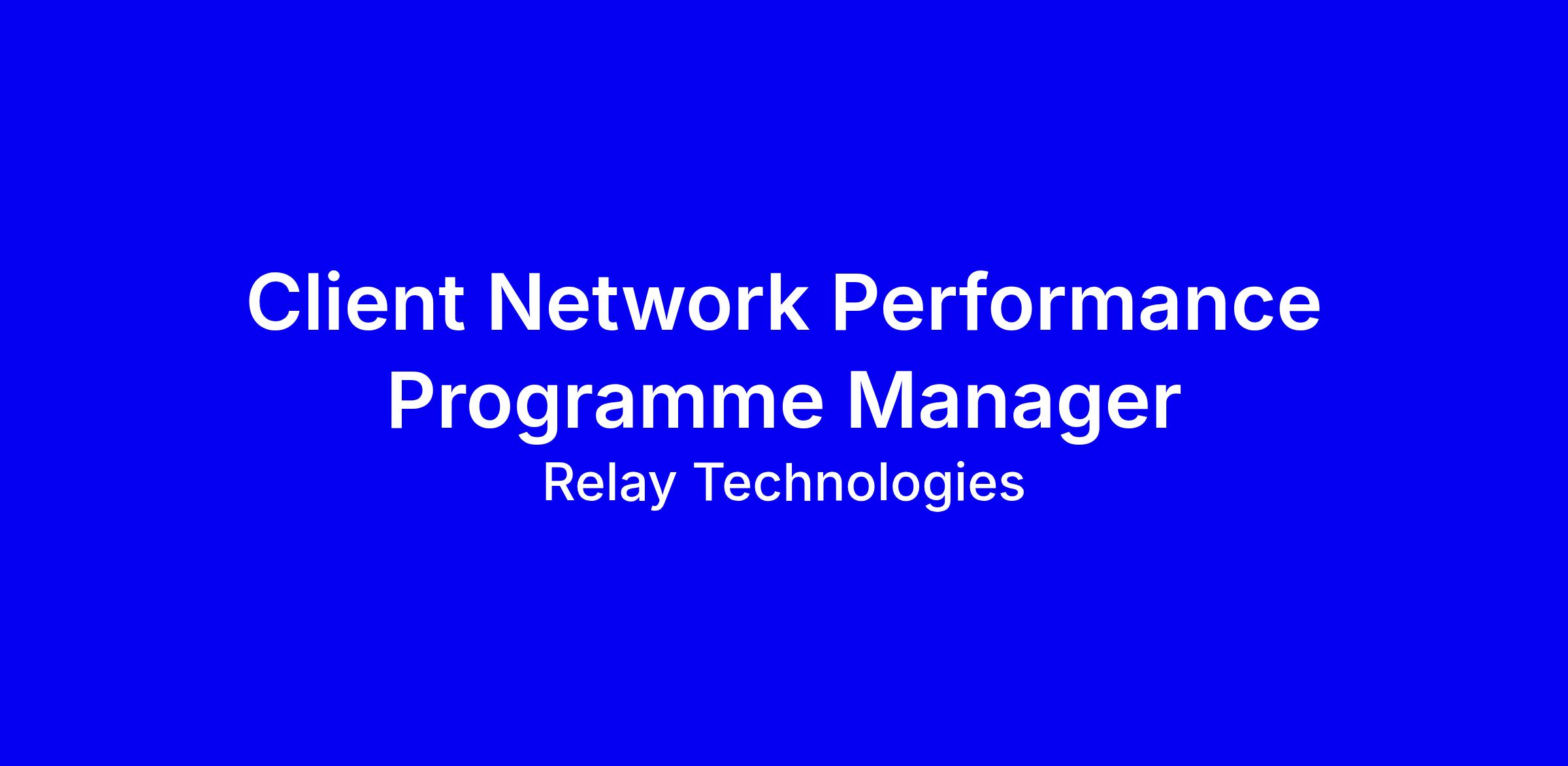 As Client Network Performance Programme Manager, you own the end-to-end programme of improving network performance across Relay's strategic accounts. You take the problems that matter most, work across every operational team to understand what's driving them, build structured improvement plans, and drive the squads to deliver. You hold squads accountable to their improvement roadmaps, track the evidence that it's working, and own the narrative that shows our clients we're getting better, consistently and measurably.