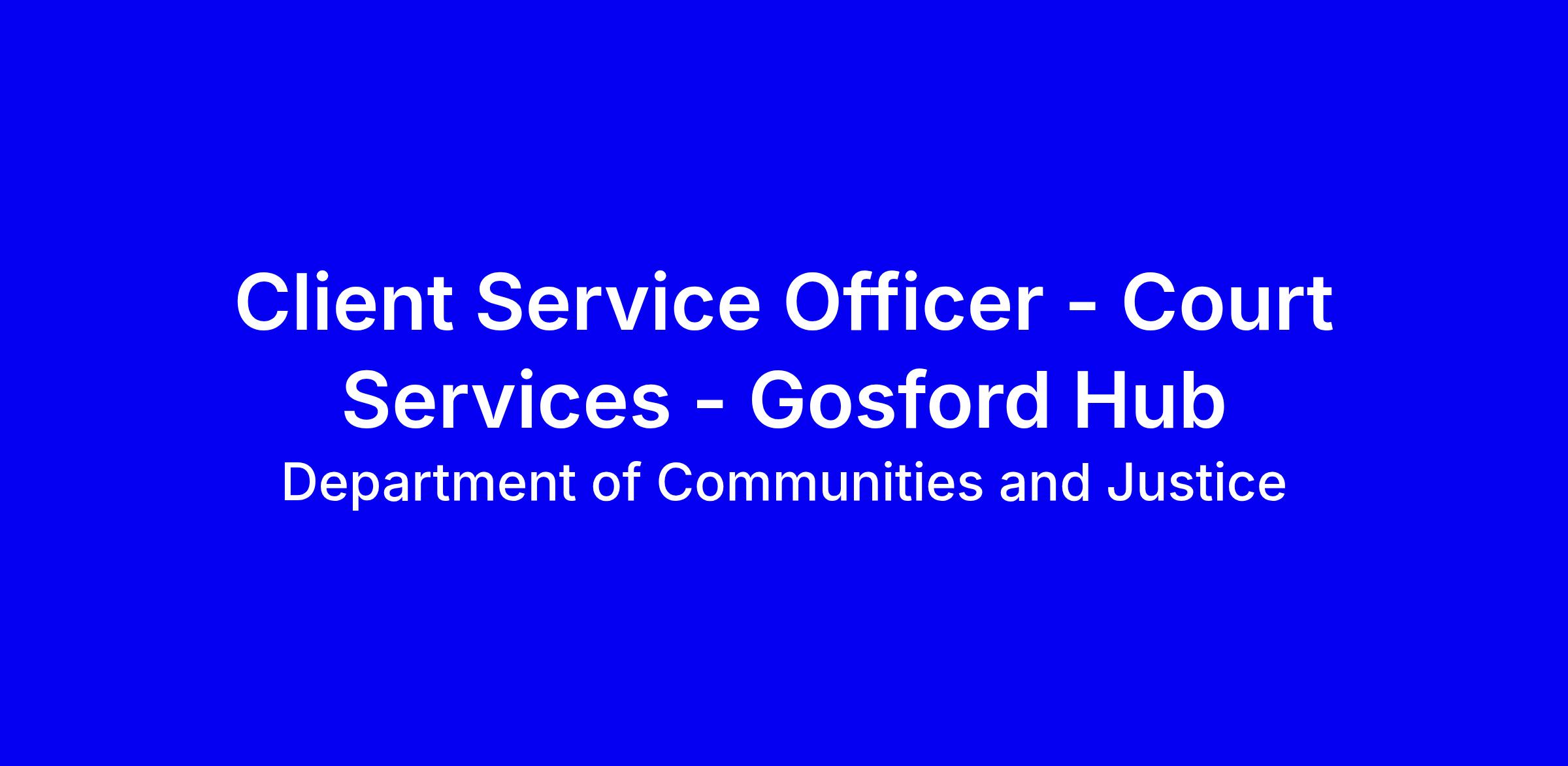 DCJ NSW is hiring a Client Service Officer at the Gosford Hub for ongoing full time, part time or temporary roles across Gosford and surrounding locations; salary is Clerk Grade 1/2, $72,728 to $82,329. The role covers clerical and administrative duties, data entry, records management and supporting court operations with a focus on delivering high quality client service. You’ll need a current Australian driver’s licence, be willing to travel including overnight stays, and thrive in a fast paced, high volume environment with strong tech skills and confidentiality. Apply via the DCJ Careers site with a cover letter (maximum 2 pages) and an up-to-date résumé (maximum 5 pages); applications close 8 March 2026 11:59pm AEST. For questions contact Jason Mortimer or Matthew Oakley.
