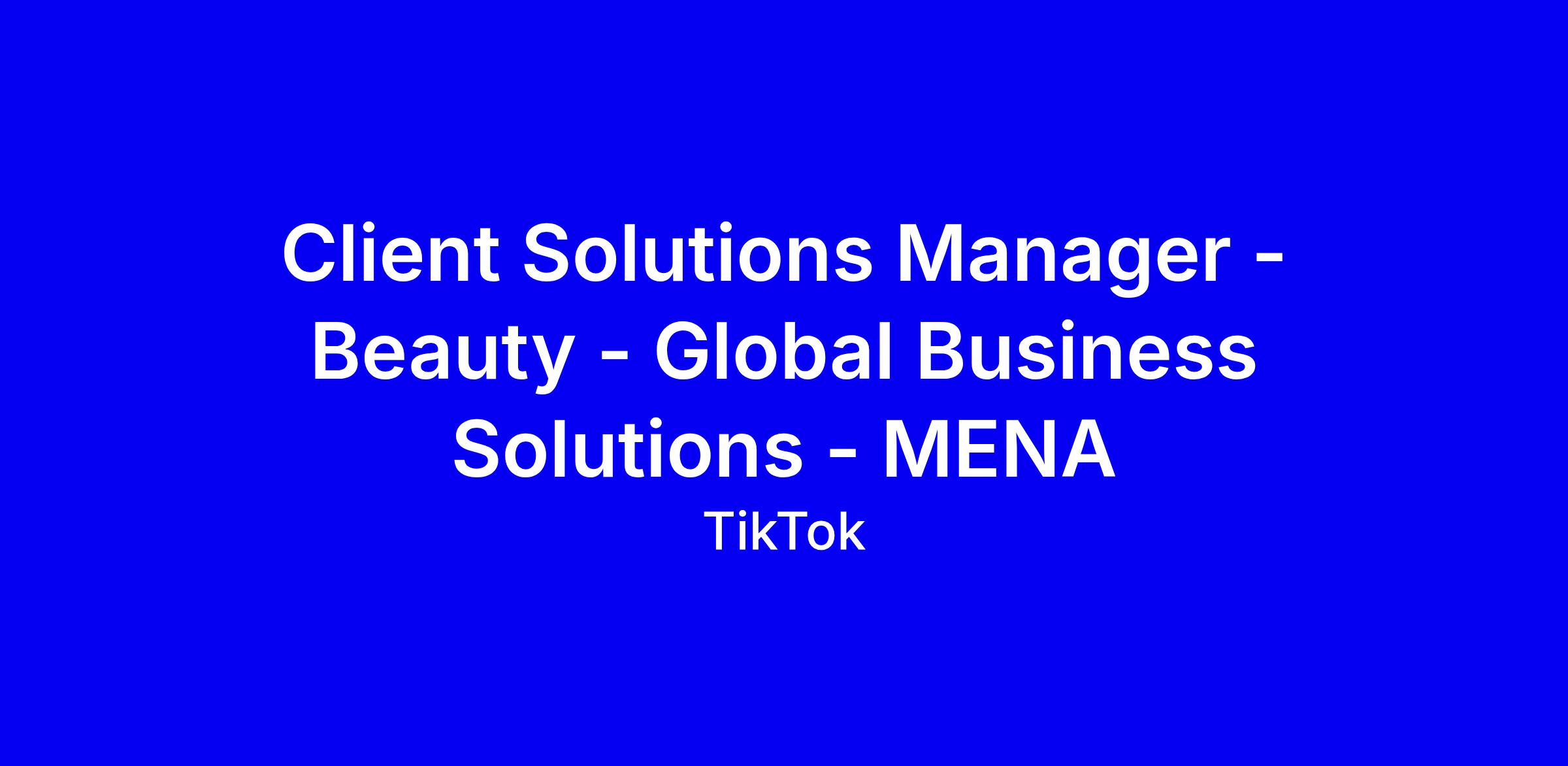 TikTok is seeking a Client Solutions Manager for Beauty within Global Business Solutions for MENA, a full‑time onsite role in Dubai. You will nurture post‑sale client relationships, partner with Sales, Ad Ops, Product, Measurement, Engineering and Creative to set up, optimize and scale campaigns, translate data into insights, and drive upsells, renewals and reactivations. You’ll act as a trusted advisor, lead end‑to‑end campaign management, troubleshoot issues with Product and Engineering, and inform product strategy from market feedback. To apply, tailor your résumé to show multi‑stakeholder client service, data‑driven optimization, and cross‑functional leadership; include metrics, relevant TikTok or adtech experience, and a concise growth narrative for beauty advertisers.