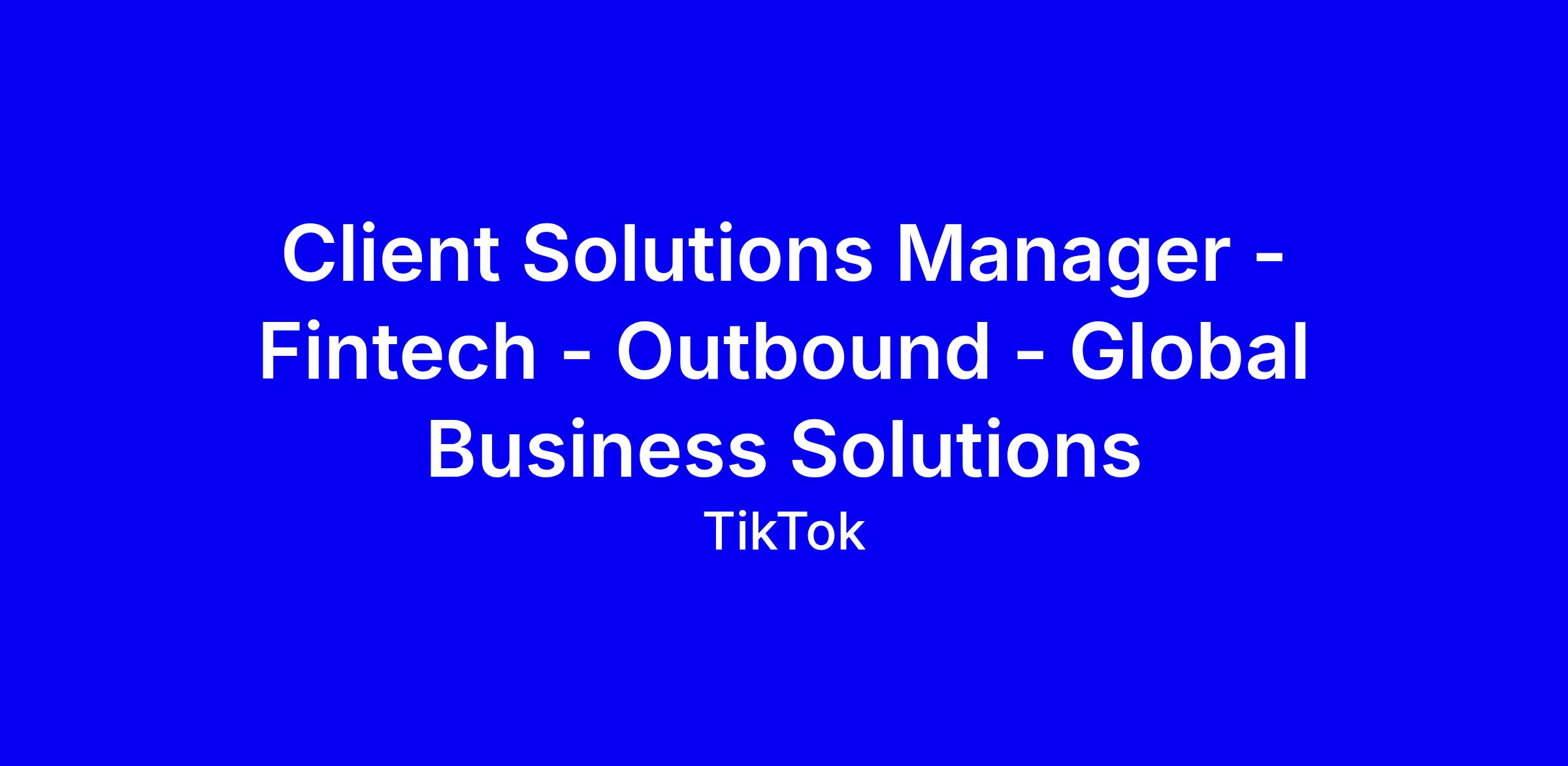 TikTok is seeking a Client Solutions Manager for the METAP region focused on fintech and outbound global business solutions. You’ll act as a trusted advisor, guiding advertisers to leverage TikTok’s ad products, drive adoption, and own upsells, renewals, and campaign reactivations. Build durable client relationships, collaborate with cross-functional teams to execute data-driven campaigns, and lead business reviews to showcase growth. The ideal candidate blends technical and commercial insight, thrives in a fast-paced, global environment, and stays ahead of product innovations. How to apply: tailor your resume to fintech wins, quantify impact, demonstrate cross-functional collaboration, and note willingness to work onsite in Dubai full-time.