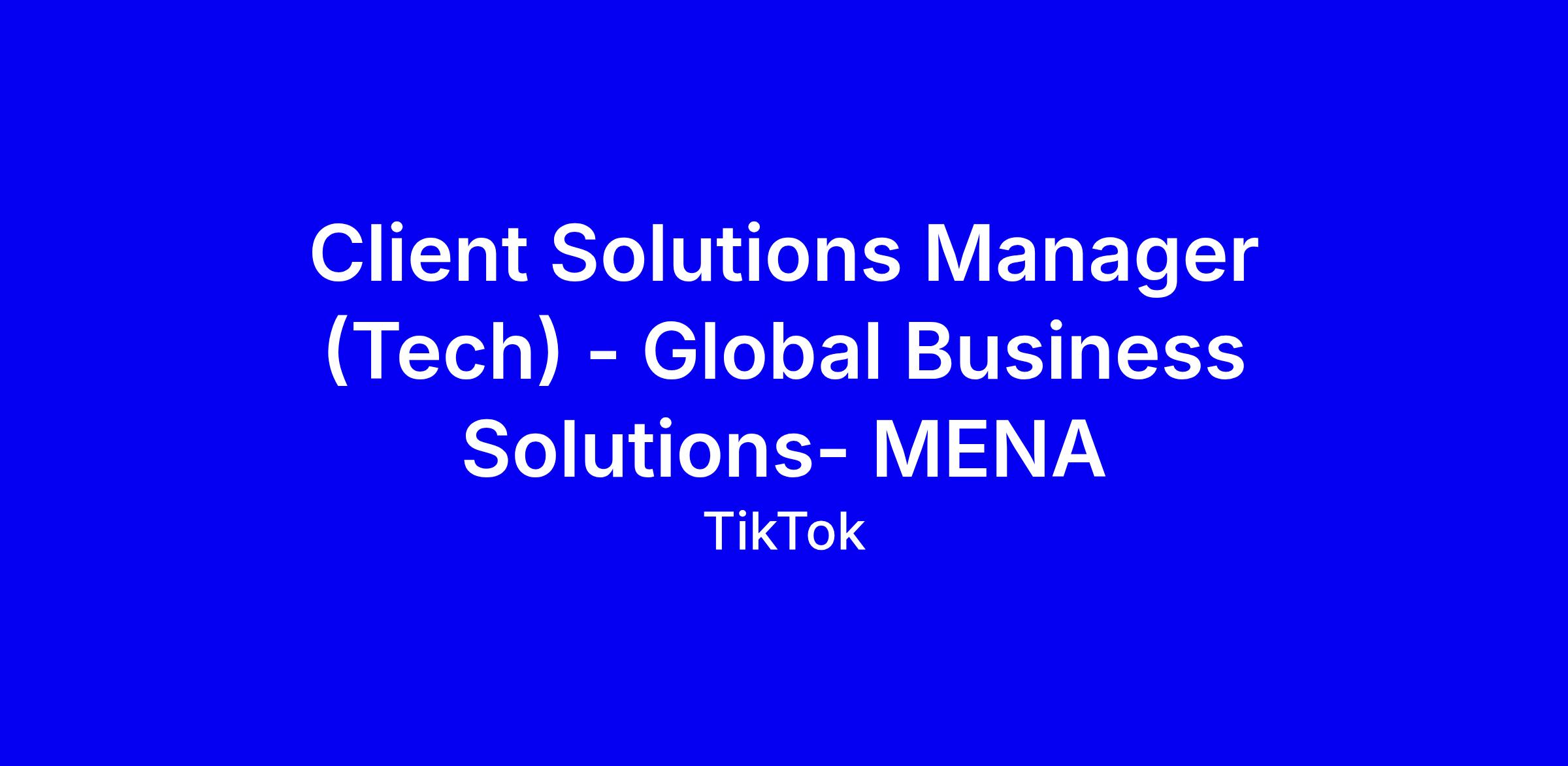 TikTok is seeking a Client Solutions Manager to join the Global Business Solutions team for the MENA region, based onsite in Dubai. The role focuses on managing and growing post-sale client relationships with advertisers and agencies, coordinating cross-functionally with ad ops, product and R&D, guiding inventory allocation, monitoring campaigns, and delivering data-driven insights to improve results while contributing to product strategy. Success hinges on outstanding client service in a fast paced environment, plus a consultative, long-term mindset and a balanced blend of technical and commercial acumen to drive upsells, renewals and reactivations. Tips for applying: quantify campaign impact, show cross-functional collaboration, highlight troubleshooting with product teams, tailor your resume to regional client experience, and include brief case studies.