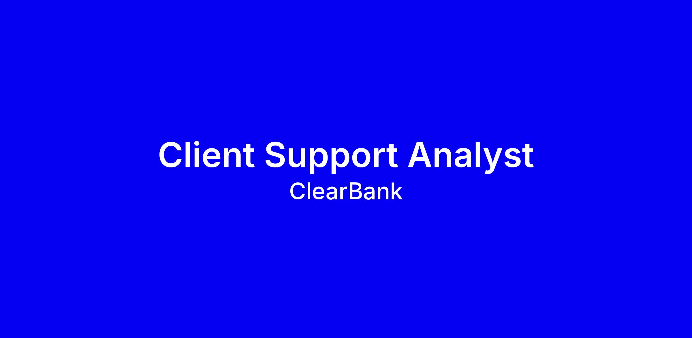 If that excites you, how about joining our Client Services team as a Client Support Analyst? Reporting to the Client Support Team Leader, you will be supporting and delivering operational tasks and facilitating the day-to-day running of ClearBank’s payment and customer-related activities to ensure our customers receive exceptional service. In this Operations based role, you will interact with cross-functional teams across the business to deliver and perform daily tasks with the opportunity to be involved in multiple projects