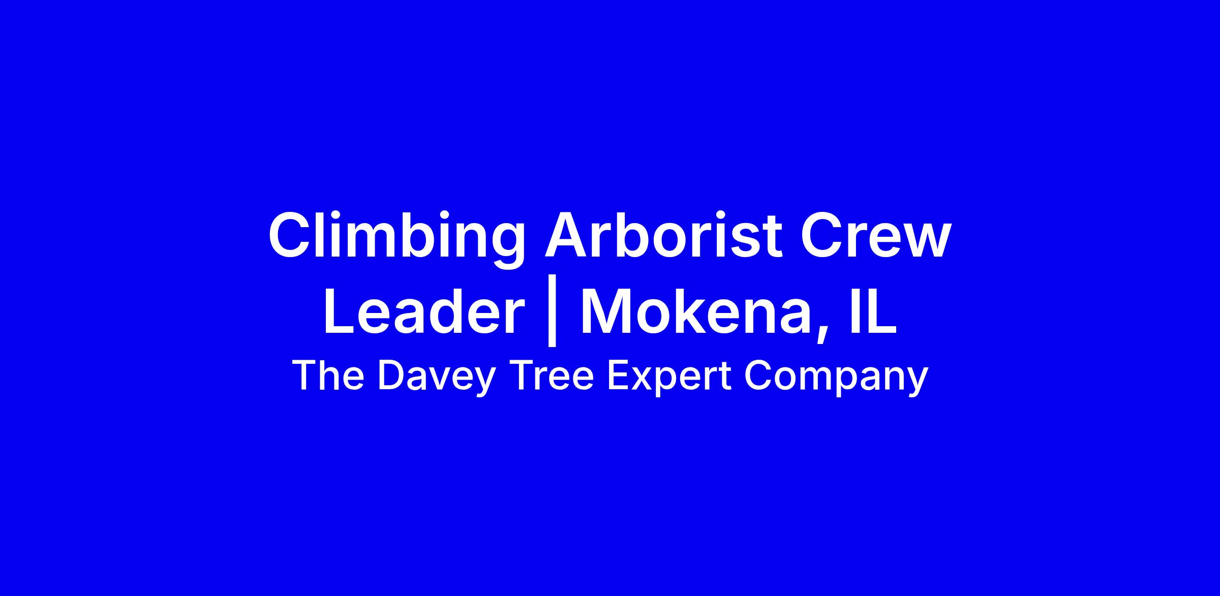 Davey Tree Expert Company is hiring a Climbing Arborist Crew Leader in Mokena, IL, at $30 per hour for a full-time, onsite role. You’ll direct a crew, plan and execute arboricultural work with DdRT/MRS and SRT/SRS systems, manage HOPE safety, prune and remove deadwood, install cables and bracing, and mentor teammates through Davey’s Career Development Program. Required: love of the outdoors, Davey Tree Trimmer Orientation, and First Aid/CPR and defensive driving on hire; preferred: pesticide licenses and ISA/TCIA certifications; CDL B a plus. Benefits include PTO, holidays, 401(k) with match, health plan, growth opportunities, and travel up to 25%. Prepare a resume that highlights climbing, leadership, safety credentials, and relevant licenses and apply online.