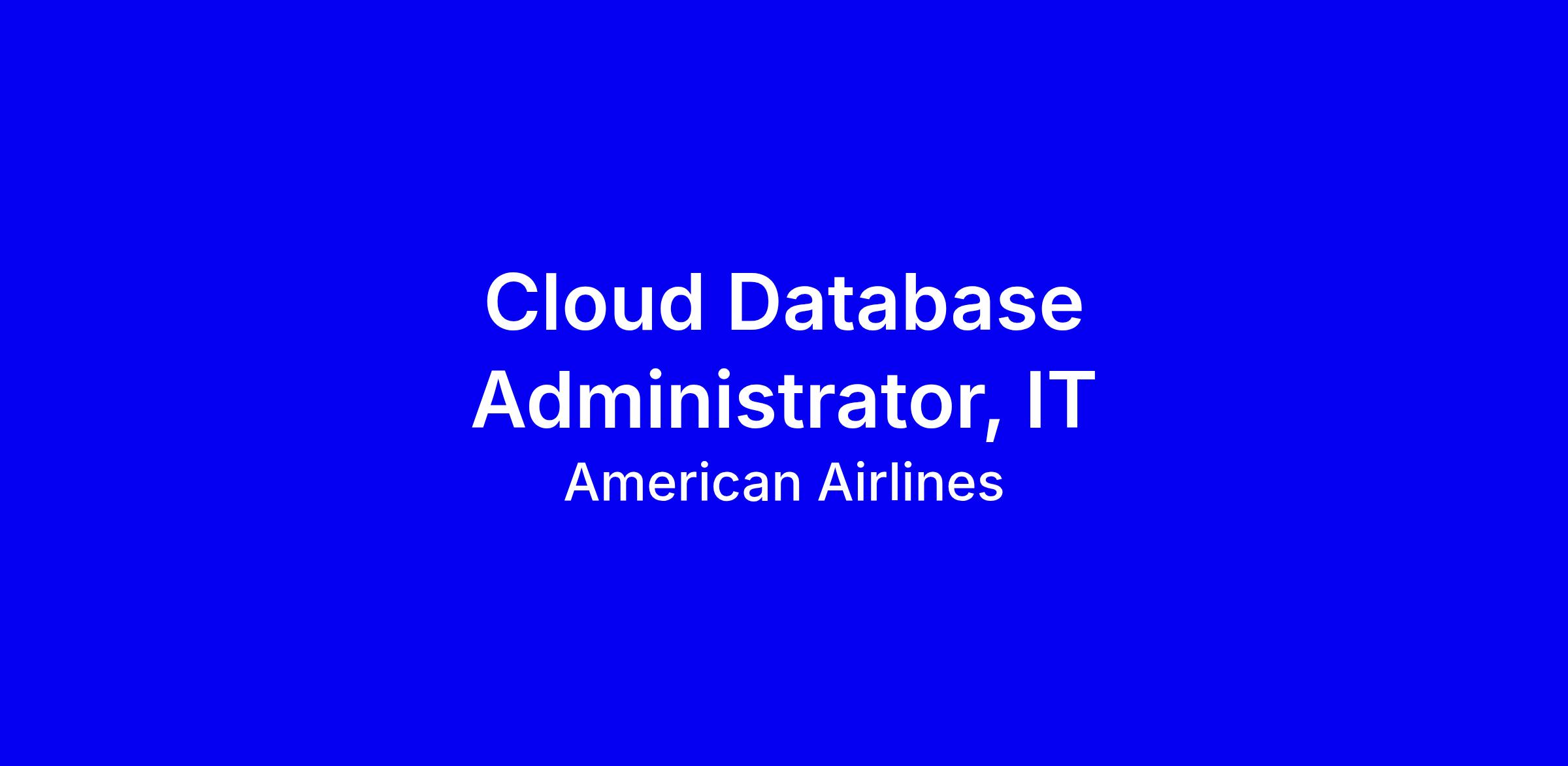 American Airlines is seeking a Cloud Database Administrator to join the IT team in Fort Worth, onsite, full time. You’ll design, implement, and support enterprise databases in Azure, optimize Azure SQL, PostgreSQL, and Cosmos, and lead backup, security controls, HA and DR strategies, and migrations to Azure while collaborating with development teams to boost performance and reliability. The role requires a Bachelor’s degree and 5+ years of DBMS design and administration with Azure DB offerings, SQL Server 2019, or Oracle 19c. Preferred: Master’s degree, 7+ years, airline industry. Certifications AZ-900, DP-300, AZ-104. To apply, tailor your resume to cloud DB achievements and Azure projects.