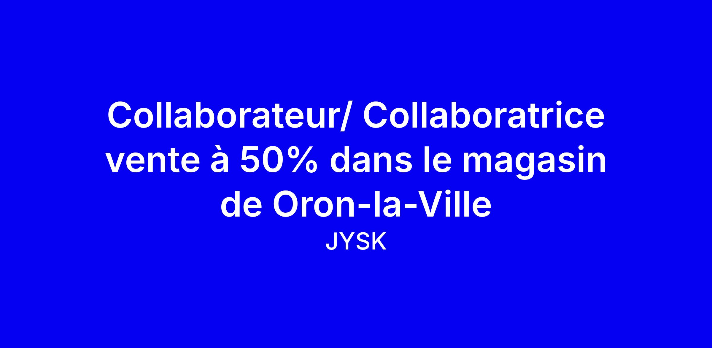 JYSK recherche un-e collaborateur-trice vente à 50% pour le magasin d’Oron-la-Ville. Tu seras au cœur de la vente et du service client, avec la responsabilité d’un secteur autonome (par ex matelas, meubles) et de la réception et du réassort des marchandises, dans un environnement dynamique où le samedi peut être travaillé. L’offre comprend une excellente formation et un mentorat, des concours internes, un bonus sur le chiffre d’affaires, 20% de réduction, une caisse de pension attractive, 5 semaines de vacances et diverses activités d’équipe. Pour postuler, mets en avant ton sens du contact client, ton esprit d’équipe et ta capacité à travailler physiquement et en autonomie, et adapte ta candidature avec des exemples concrets de vente et de gestion de rayon via le lien de l’annonce.