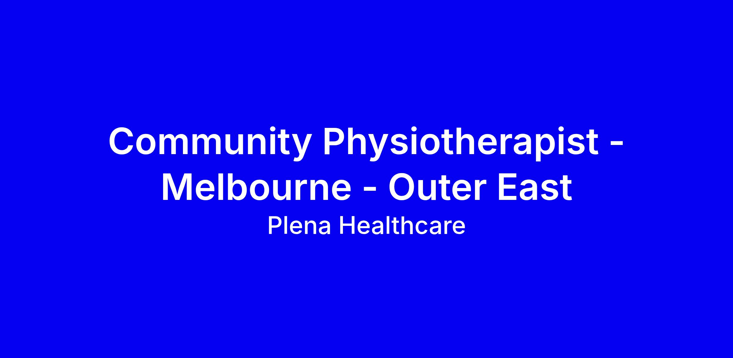As a Community Physiotherapist, you will join a large, supportive multidisciplinary team delivering personalised, evidence-based care to help consumers maintain independence, function, and quality of life.
