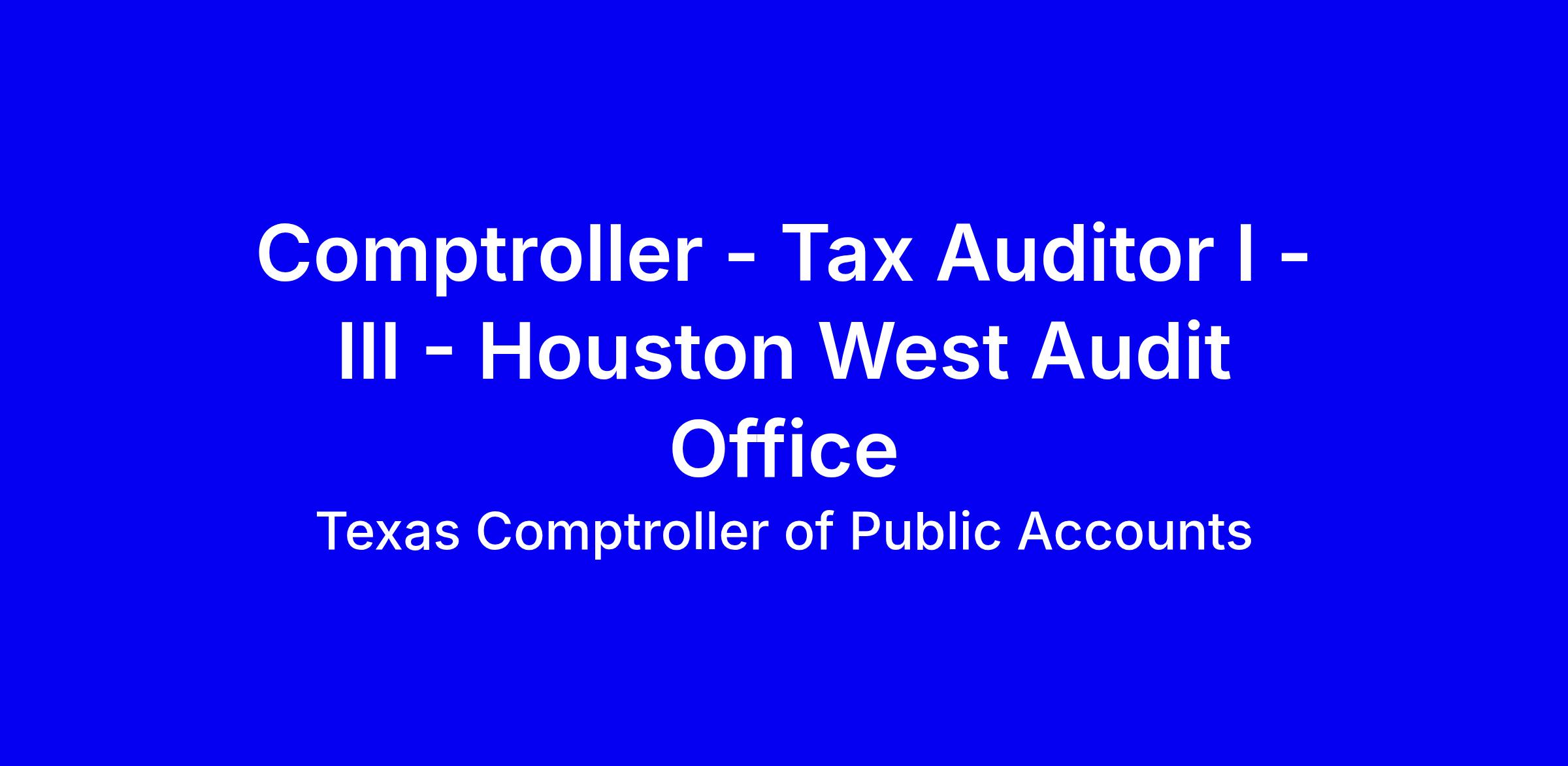 Texas Comptroller of Public Accounts is seeking Tax Auditor I through III for the Houston West Audit Office in Katy. This full time onsite role features six months of on site Basic Audit Training with travel approximately every three weeks to training centers in Austin, Dallas or Houston, then telework is allowed. There are four openings with salaries from $5,416.67 to $6,562.50 monthly; training on site for six months with travel to training centers, then telework is allowed. Minimum qualifications include a degree in accounting or related field, with private, state or local government experience considered for higher entry levels. Be prepared for a skills demonstration and background check, and provide military preference documentation if applicable.