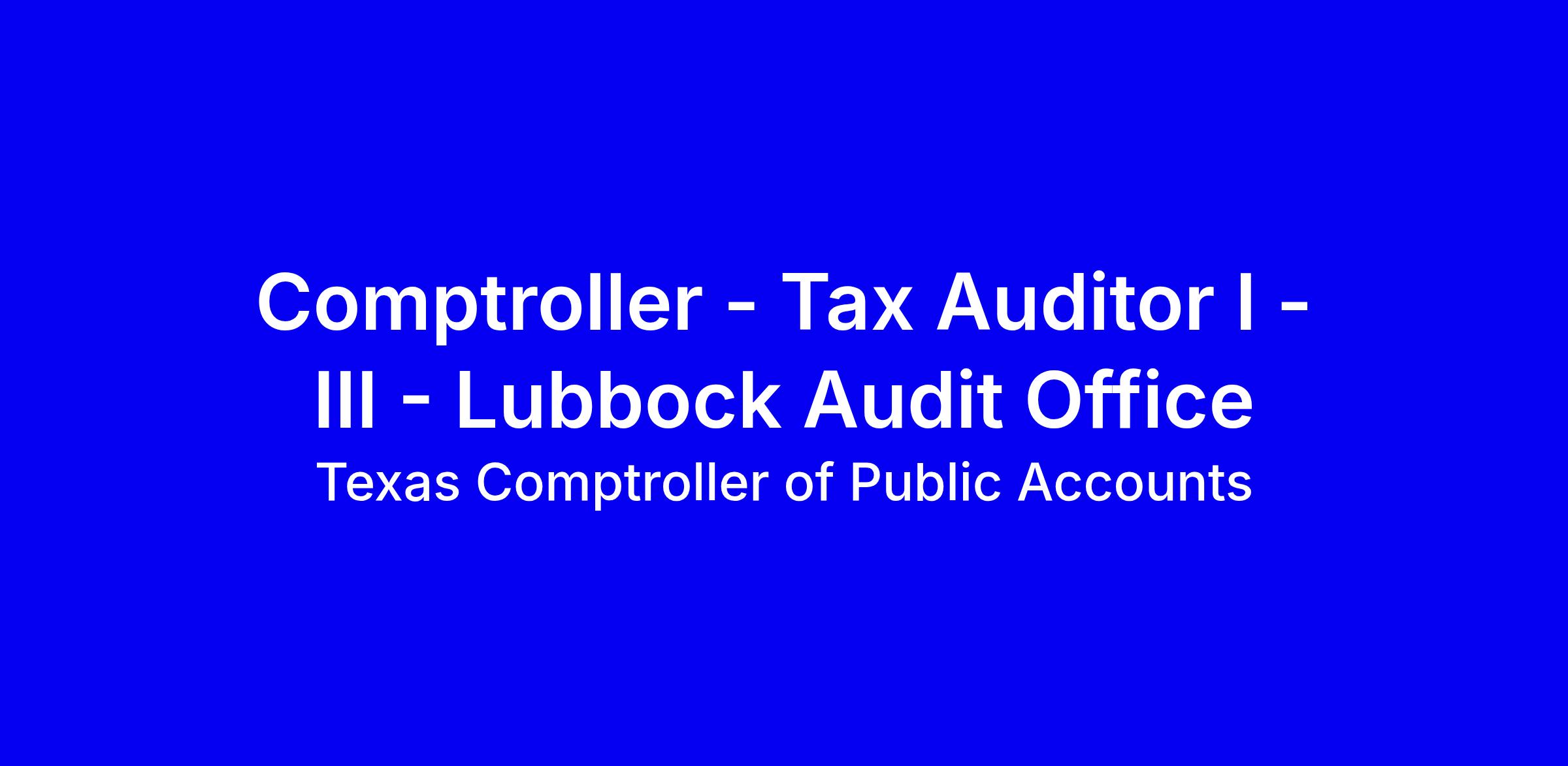 Texas Comptroller of Public Accounts is hiring a Tax Auditor I to III for the Lubbock Audit Office. This full time onsite role begins with six months of in‑office Basic Audit Training, with travel roughly every three weeks to centers in Austin, Dallas or Houston, and teleworking permitted after training. Salary ranges from $5,416.67 to $6,562.50 monthly depending on level, with clear paths from Auditor I through III based on experience and certification. Key requirements include a bachelor’s or master’s in accounting or related degrees with accounting coursework, a valid driver’s license, and a good driving record; prior tax auditing experience may position you for higher levels. Apply with a résumé and completed CAPPS application by April 15, 2026, and be prepared for a possible skills demonstration and background check; military preference documentation may apply, and travel reimbursement is provided.