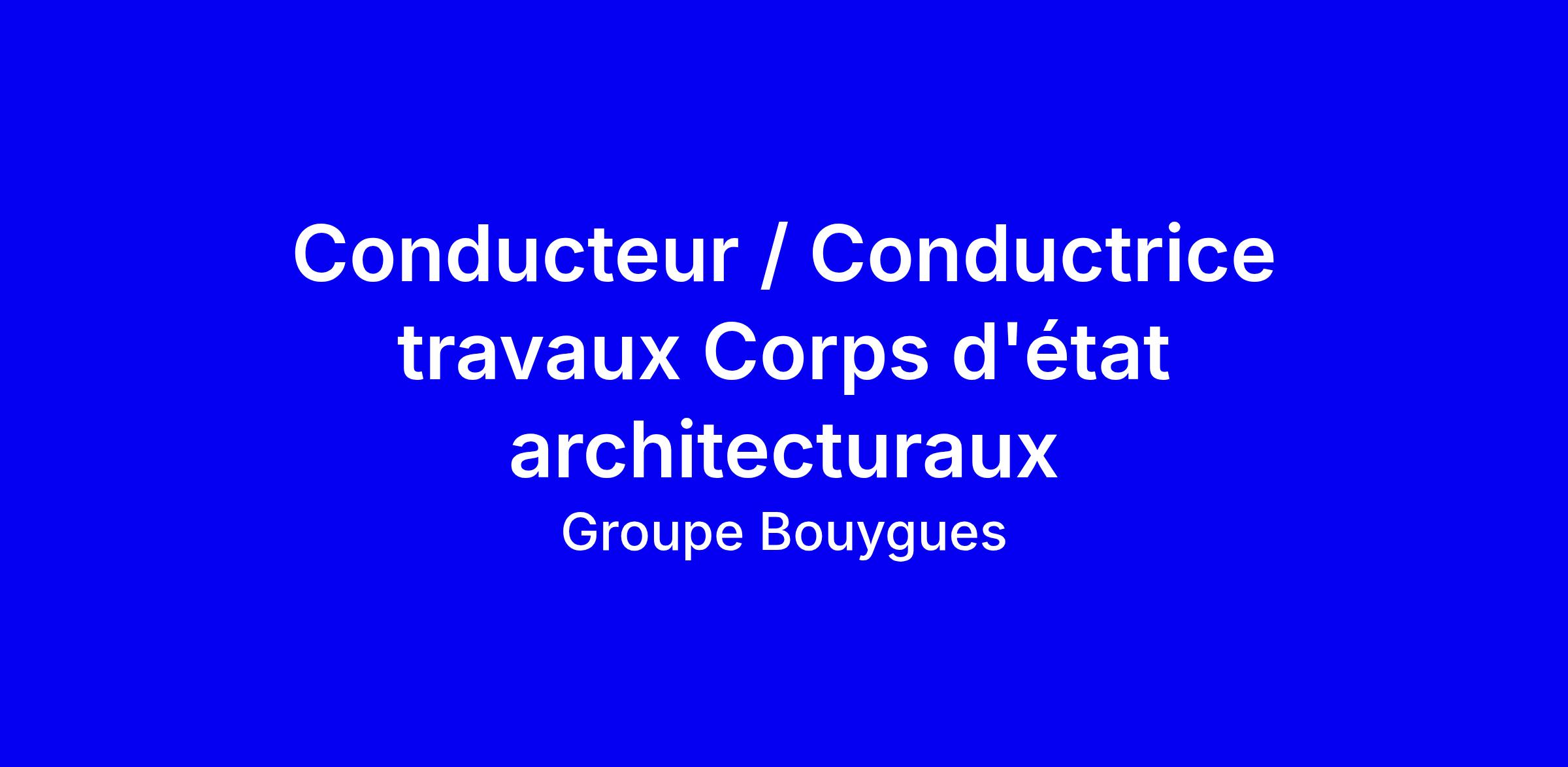 Bouygues Bâtiment Île-de-France - Rénovation Privée recherche un Conducteur ou une Conductrice de travaux pour les corps d état architecturaux afin de piloter des projets prestigieux à Paris (immobilier d entreprise, hôtellerie de luxe, commerces et hôtels particuliers). Le poste nécessite au moins 3 ans d expérience à plein temps sur des projets de corps d état architecturaux, idéalement en rénovation lourde. Vous préparerez et suivrez le chantier, gérerez les budgets et les délais, coordonnerez les intervenants et serez l'interlocuteur du maître d ouvrage. Avantages: 13,3 mois, mutuelle, panier repas, véhicule, RTT, épargne salariale. Postulez à [email protected].