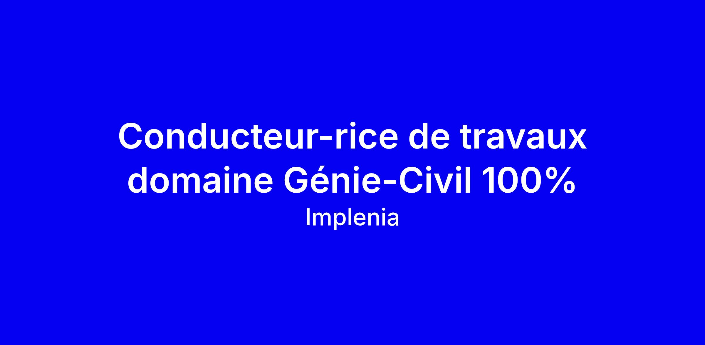 Implenia cherche un Conducteur de travaux Génie-Civil 100 % pour des chantiers d’infrastructure à Genève Onex, en mode onsite. Leader suisse du secteur, Implenia valorise la diversité et offre des possibilités d’évolution et de formation. Vous planifierez, organiserez et coordonnerez les travaux, dirigerez les équipes sur site et assurerez la communication entre clients, architectes, ingénieurs et sous-traitants, tout en garantissant sécurité, délais et budgets et en gérant l’administration et le financement des chantiers. Profil: diplôme de conducteur de travaux ou équivalent, minimum 5 ans d’expérience en Suisse, capacités à gérer plusieurs projets, esprit entrepreneurial et travail en équipe, connaissance des normes. Avantages et opportunités d’évolution. Pour postuler, adaptez CV et lettre à ces points et mettez en avant vos réussites sur des projets multiples et votre maîtrise des réglementations locales.
