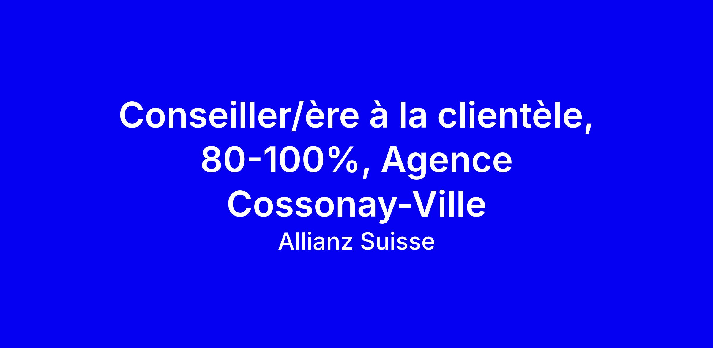 Allianz Suisse, Agence Cossonay-Ville, recrute un/une conseiller/ère à la clientèle en 80-100 % pour Cossonay-Ville, en présentiel. Vous intégrerez l’agence générale, bénéficierez d’une formation continue, d’une grande autonomie pour organiser votre journée et d’un modèle de rémunération axé sur les résultats avec des perspectives de progression vers un poste de chef de vente ou une spécialisation en prévoyance ou PME. Exigences: apprentissage ou diplôme équivalent, expérience en conseil ou vente, certificat AFA, sens du résultat et bon réseau; obligation d’habiter le secteur de l’agence et d’y disposer d’un réseau solide. Pour postuler contactez Quentin Vontobel au 058 357 77 23. Mettez en avant vos résultats et votre réseau local.