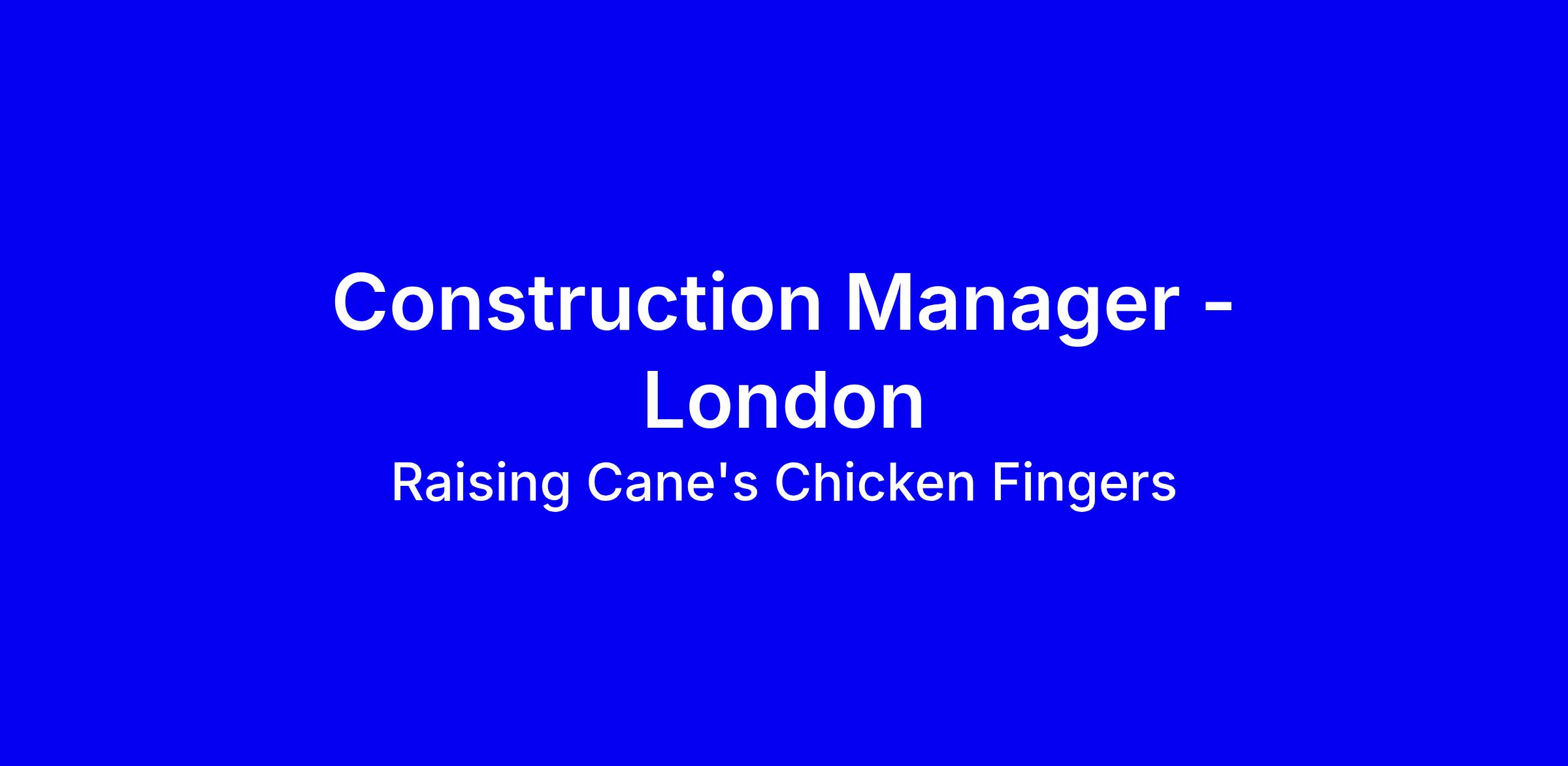Raising Cane’s Chicken Fingers is seeking a Construction Manager in London to oversee restaurant construction from planning through handover, ensuring builds follow approved drawings while delivering on cost, time, and quality. You will review project documents and contracts, manage general contractor schedules, track vendors, collaborate with the Design team to modify documents, complete the handoff to the New Restaurant Opening team, and assist the Architect of Record in resolving site issues using construction documentation tools. The role requires 5+ years of restaurant construction experience, a bachelor’s degree in construction, architecture, or engineering, strong MS Office skills, and the ability to travel up to 50 percent. To apply, highlight tangible project outcomes, a global mindset, excellent communication, and your ability to manage shifting priorities and multiple projects, with examples of multi-site openings and cross functional collaboration, and tailor your resume to emphasize cost control, schedule adherence, and quality.