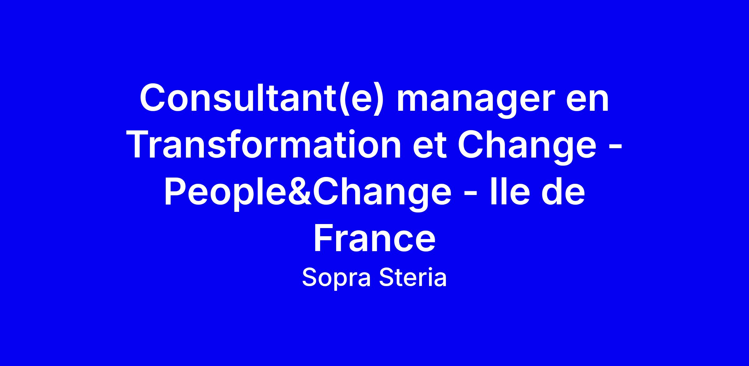 Cette offre cherche un(e) consultant(e) manager en transformation et change pour la practice People & Change de Sopra Steria Next à Courbevoie. Vous intégrez un cabinet de référence, plus de 1900 consultants, intervenant sur des projets d’envergure dans le privé et le public, et proposant une approche centrée sur l’humain et l’ancrage du changement. Attendez-vous à au moins 5 ans d’expérience en transformation, une première expérience en conduite du changement, un excellent relationnel, la capacité à porter des offres et à déceler les besoins clients. Pour postuler, mettez en avant vos résultats concrets, vos initiatives proactives et vos expériences multi-secteurs, et illustrez votre aptitude à coacher et à co-construire des solutions.