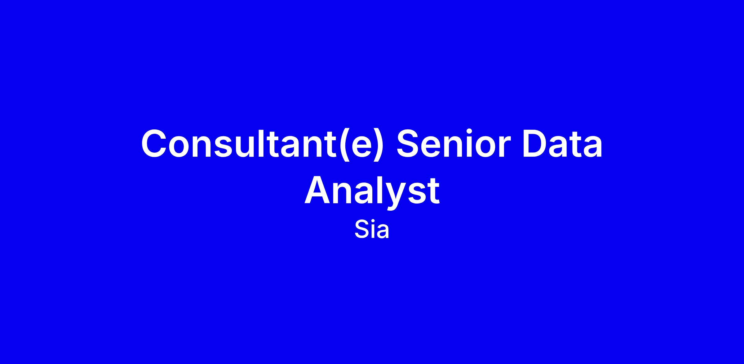 Pour accompagner son développement, Sia recrute un(e) consultant(e) Data Analyst Confirmé/Senior.