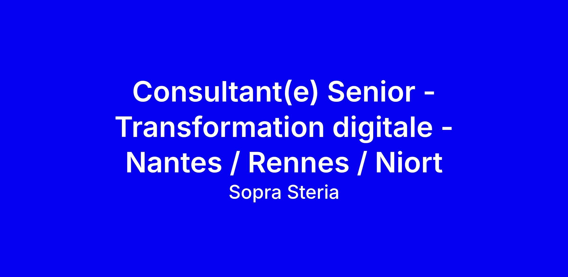 Consultant(e) Senior en transformation digitale chez Sopra Steria Next, vous pilotez des programmes dans des secteurs variés et intervenez sur Nantes, Rennes ou Niort. Exige Bac+5 et au moins 3 ans en cabinet de conseil, avec une forte dimension métier et IT, capacité à cadrer, recueillir les besoins et accompagner le changement, et esprit d’équipe dans un cadre agile. Atouts : autonomie, anglais opérationnel et sens du résultat, curiosité digitale et appétence pour l’innovation. Avantages : télétravail partiel, mentorat, formations via Sopra Steria Academy et passerelles internes. Pour postuler, adaptez votre CV et vos livrables, mettez en avant vos réalisations en transformation et conduite du changement et votre expérience internationale.