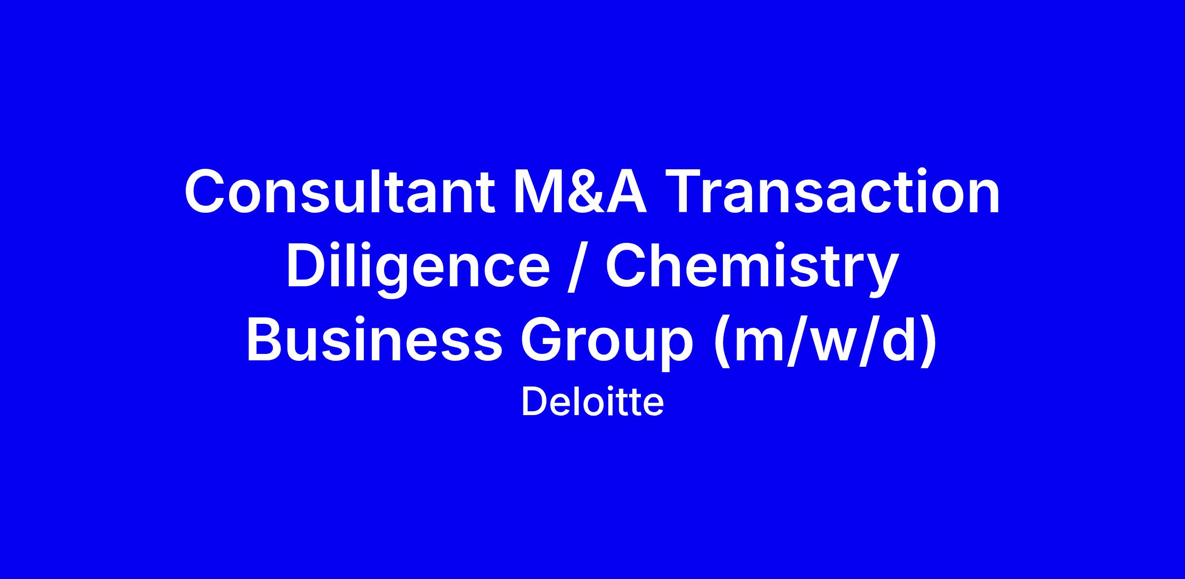 Sichere unseren gemeinsamen Erfolg und mach mit uns den Unterschied: als Consultant M&A Transaction Diligence / Chemistry Business Group (m/w/d).