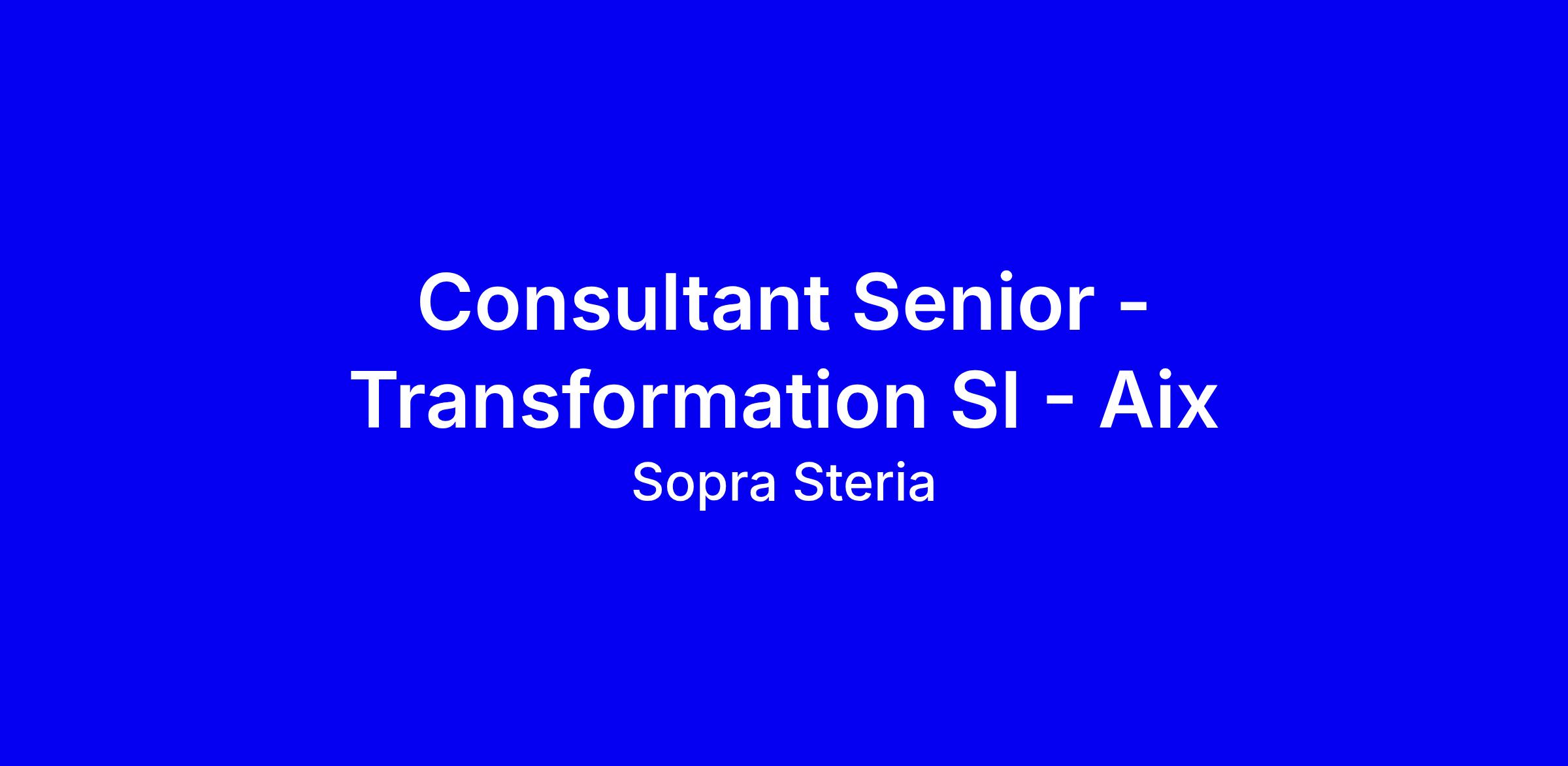 Cette offre de Consultant Senior Transformation SI Aix chez Sopra Steria Next vous intègre à la Practice Aeroline, une équipe de 160 consultants dédiés à la transformation dans l’aéronautique. Vos missions: cadrage et mise en œuvre de projets métiers et digitaux, amélioration de la performance opérationnelle, optimisation des processus et des parcours clients, conduite du changement, transformation numérique et déploiement d’ERP, avec des méthodes agiles, co-design et Lean-IT. Profil: appétence aéronautique, proactivité, curiosité, rigueur, capacités d’analyse et synthèse, diplôme d’ingénieur ou de commerce, goût pour les outils numériques. Avantages: télétravail jusqu’à 2 jours/semaine, locaux certifiés, mutuelle, titres-restaurants, mentorat. Pour postuler, adaptez CV et lettre en valorisant vos résultats en transformation et change management et vos expériences ERP et agile.