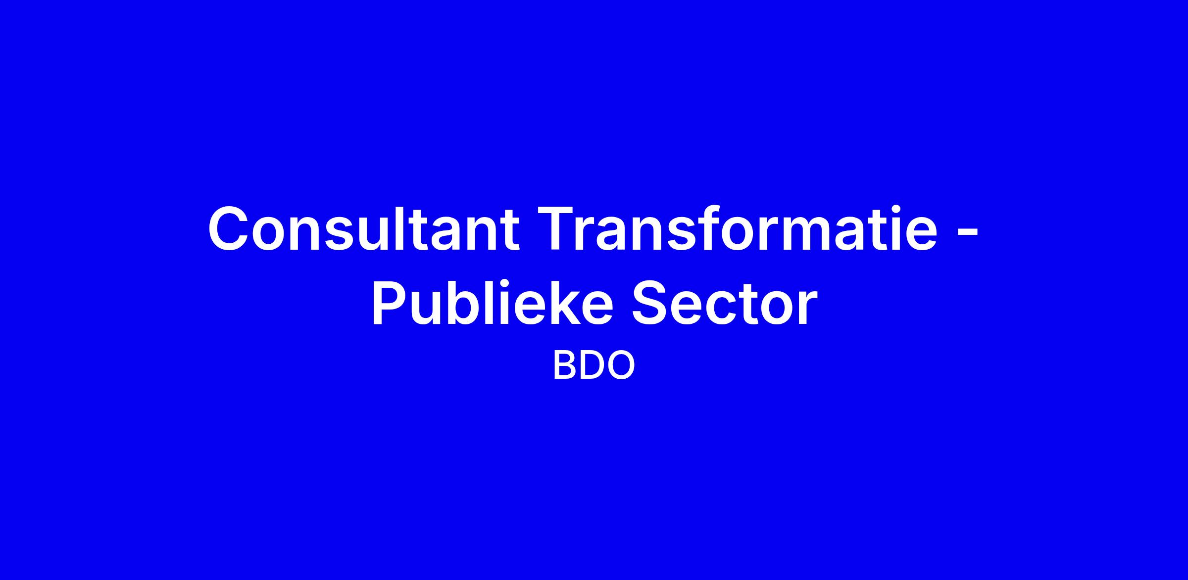 BDO zoekt een Consultant Transformatie in de Publieke Sector voor Utrecht, fulltime en on-site, binnen Management Consultancy, Publieke Sector. Je vertaalt strategische ambities van publieke organisaties naar duurzame organisatorische en digitale verandering door sterk stakeholdermanagement, procesanalyse en het begeleiden van verander- en adoptietrajecten, en werkt mee aan nieuwe proposities en marktinitiatieven. Belangrijk is een relevante WO-opleiding en een oprechte passie voor de publieke sector en zorg, met focus op mensgerichte impact. BDO biedt volop ontwikkelingsmogelijkheden, een mobiliteitsbudget, veel verlof en flexibele werkplek, plus academies en summerschools. Reageer met CV en motivatiebrief, ook bij weinig ervaring; sluitdatum 31 januari 2026. Vragen? Bel Carlijn Evers via +31 (06) 30 26 45 39 of mail [email protected].