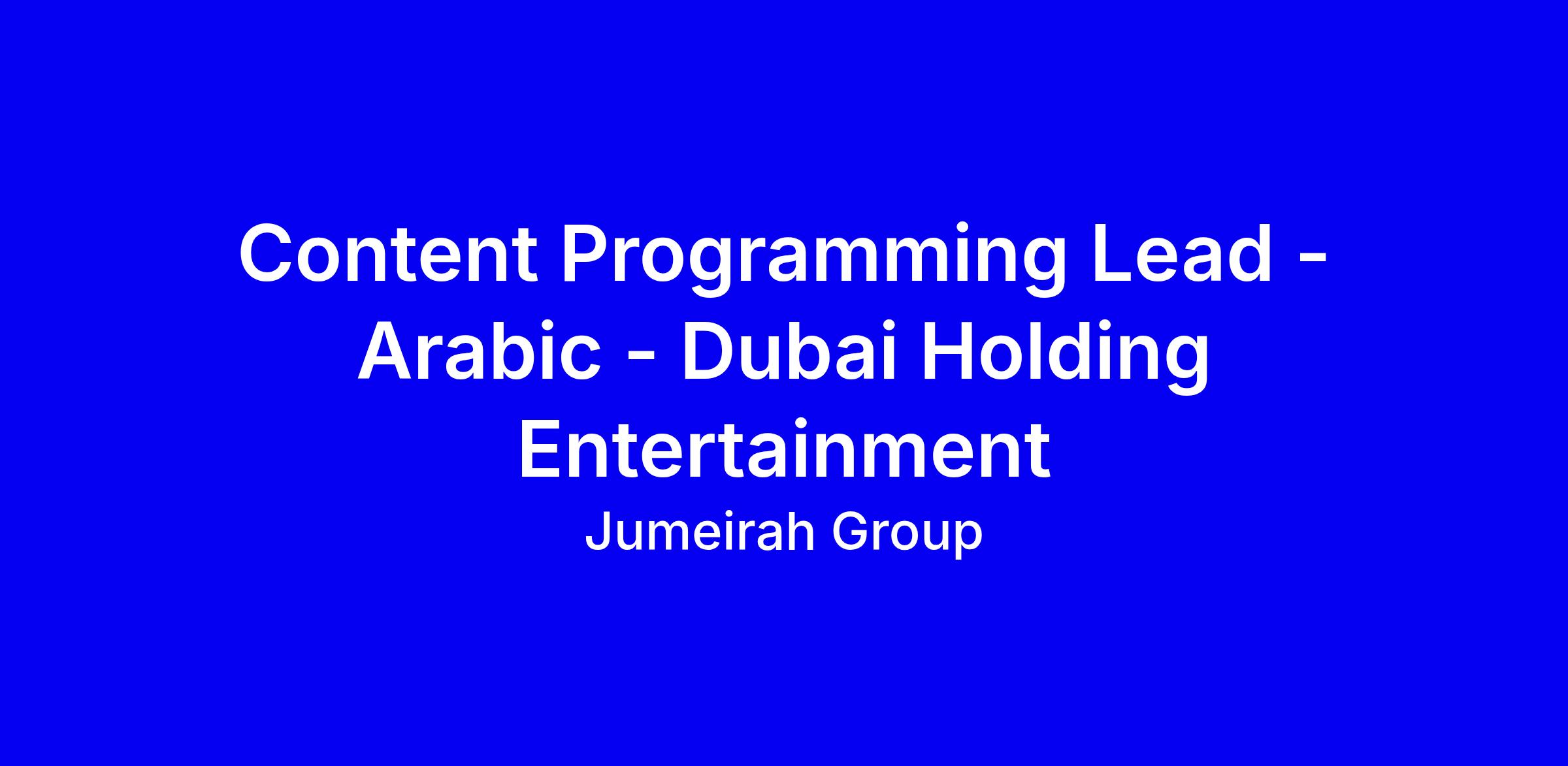 Dubai Holding Entertainment is building a culture-first media network born in Dubai and designed for the region. We’re looking for a Content Programming Lead (Arabic) to define, launch, and scale Arabic-first programming across podcasts, video, and social platforms.