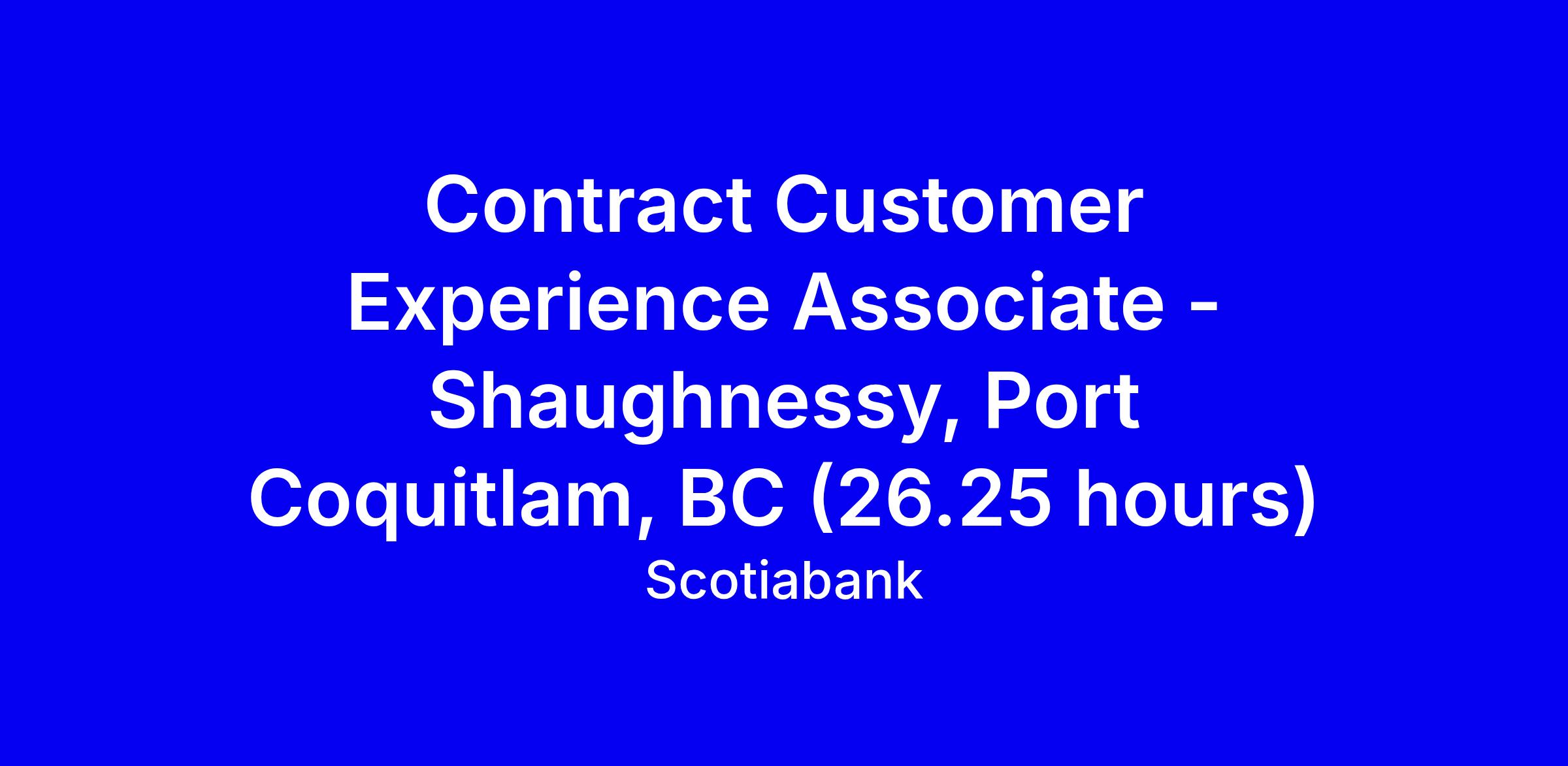 Scotiabank seeks a Contract Customer Experience Associate in Port Coquitlam (26.25 hours, onsite), focused on putting customers first and helping them reach financial goals. The role blends high touch service with light sales, from processing transactions and solving needs to guiding clients to mobile banking and other self‑serve tools, while building lasting relationships and contributing to branch targets. The right candidate will show proven customer service, comfort with sales, flexibility to work varied hours, and strong technical aptitude to promote digital options. Apply online now and tailor your application to highlight customer interactions, tech fluency, and teamwork.