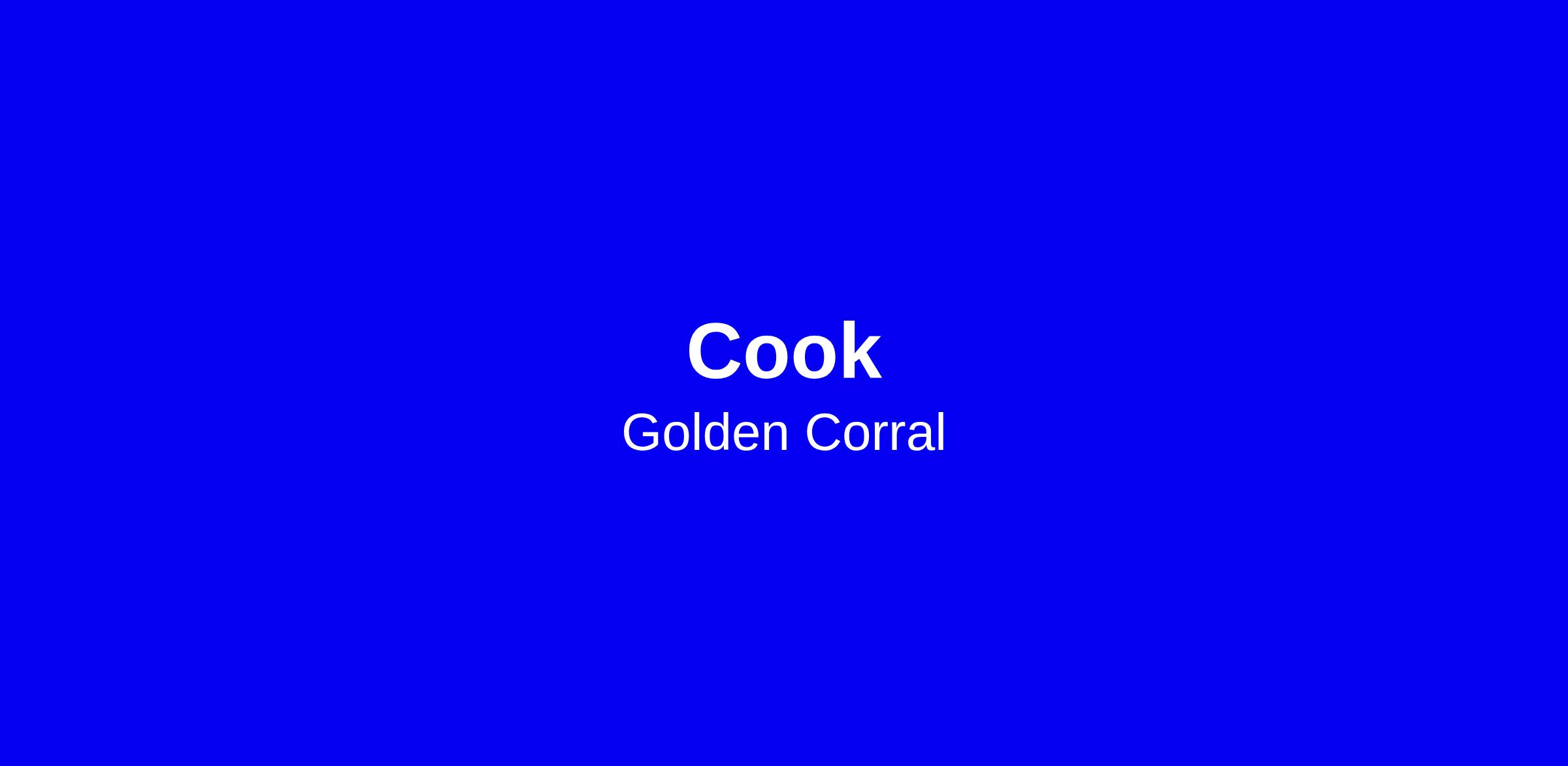 Our franchise organization, Stocks Investments Inc, dba Golden Corral, is currently seeking energetic, friendly individuals to join our team! The Cook is responsible for the quality, quantity, tastiness, and freshness of all Hot Choice Buffet products. The Cook pays special attention to speed, cleanliness, organization, and product specifications.
