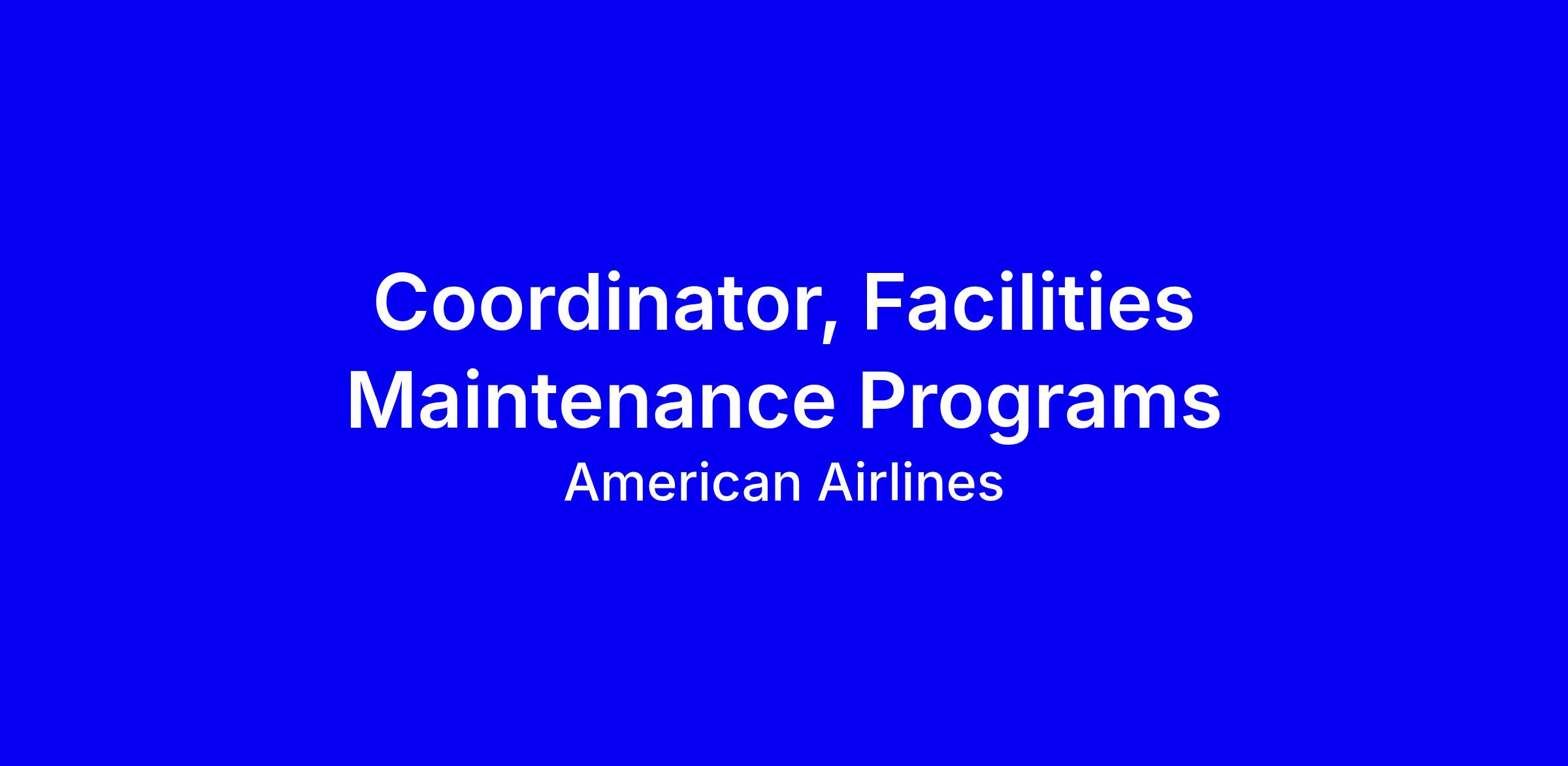 American Airlines seeks a Coordinator, Facilities Maintenance Programs in Fort Worth to manage CMMS administration, maintenance scheduling, asset records, and compliance, while generating reports and training staff across shifts. You’ll support audits, build data dashboards, and travel up to 50 percent to inventory assets and educate users. The ideal candidate has a high school diploma (bachelor’s preferred), hands on CMMS experience (WebTMA a plus), regulatory compliance knowledge, and strong Excel skills for pivot tables. Be prepared to obtain airport security badges and work in a fast paced environment. Tips for applying: tailor your resume to CMMS and PM tasks, quantify training and audit outcomes, and demonstrate travel flexibility and cross functional collaboration.