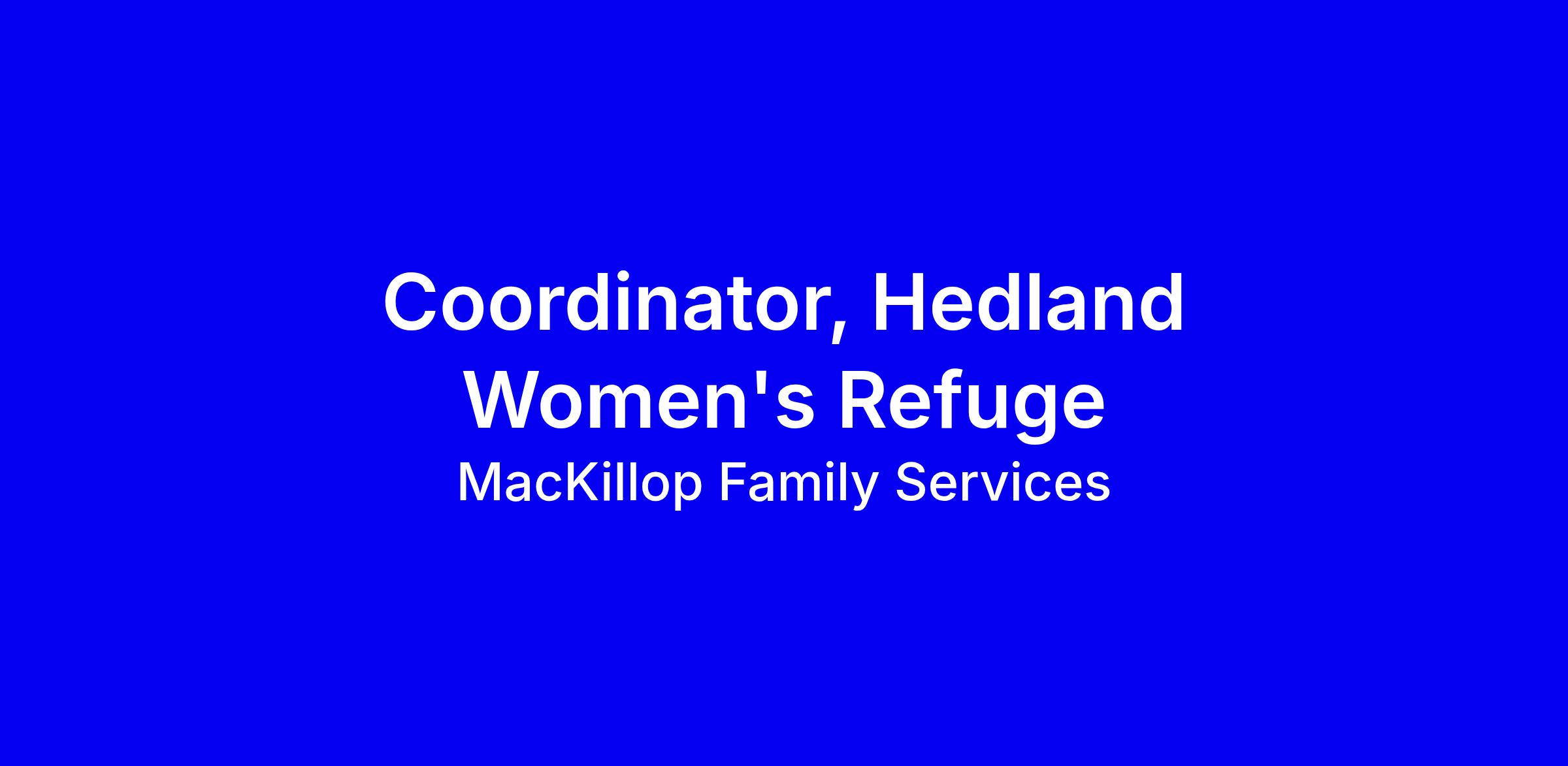 Please note, we are only considering female identifying candidates for this position. The Hedland Women's Refuge have an exemption to gender equality requirements. This is a genuine occupational qualification exception under the EOC Act 1984 Section 27