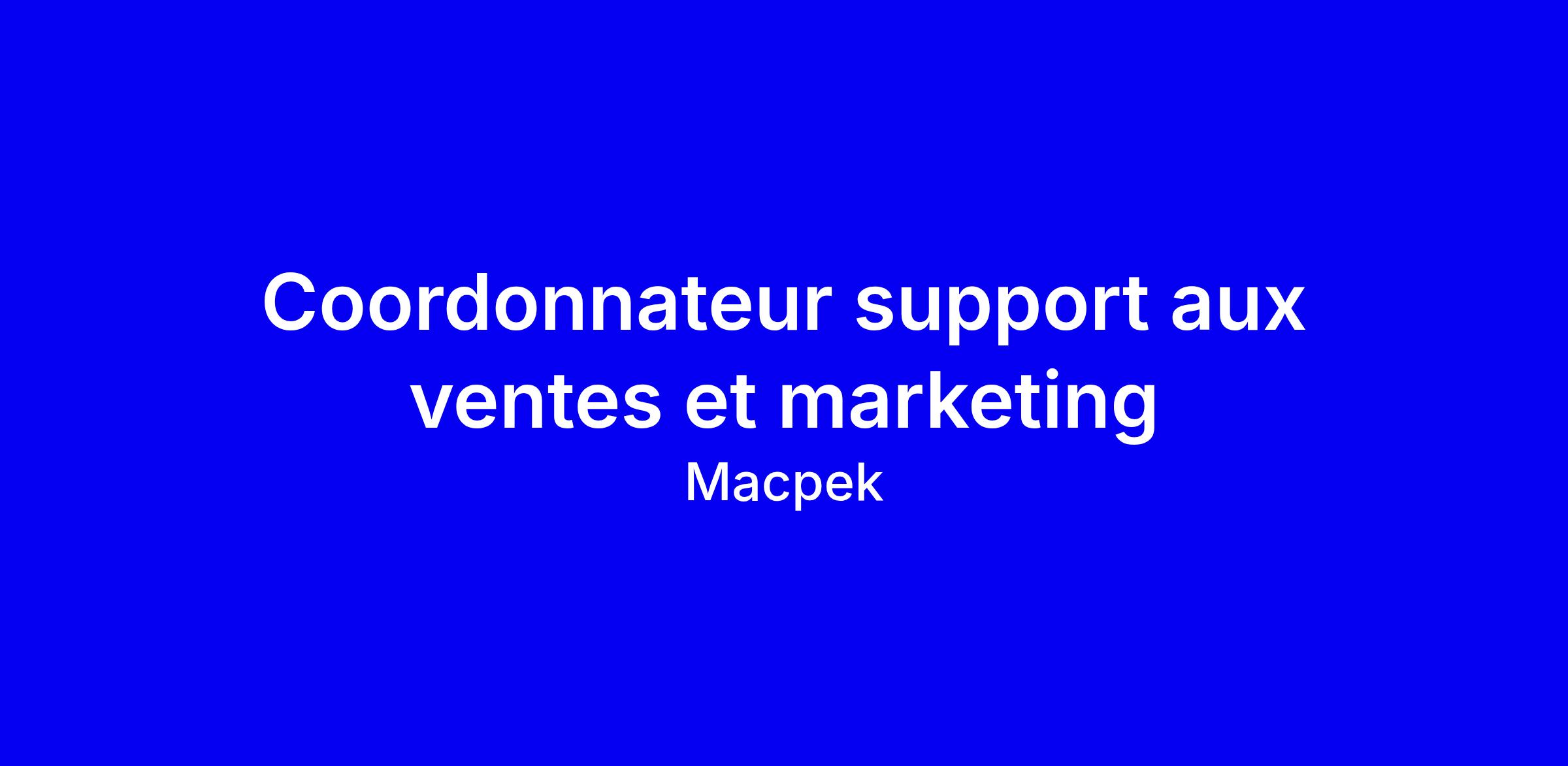 Macpek recherche un coordonnateur support aux ventes et marketing, poste à temps plein, sur site à Québec. Vous devez allier créativité et rigueur, être proactif et capable de transformer des idées en actions tout en collaborant avec l’équipe. Vos missions comprennent la coordination de supports marketing avec les fournisseurs et l’équipe de vente, le suivi des ententes coopératives, le soutien administratif, la mise en œuvre de la stratégie de marque et l’organisation d’événements promotionnels. Pour postuler, personnalisez votre CV et votre lettre en démontrant votre expérience en coordination de projets marketing, gestion de partenaires et communication bilingue (anglais indispensable), et surtout des résultats mesurables; n’hésitez pas à joindre des échantillons de supports ou campagnes. Avantages compétitifs, assurances, régime de retraite et activités sociales vous attendent.