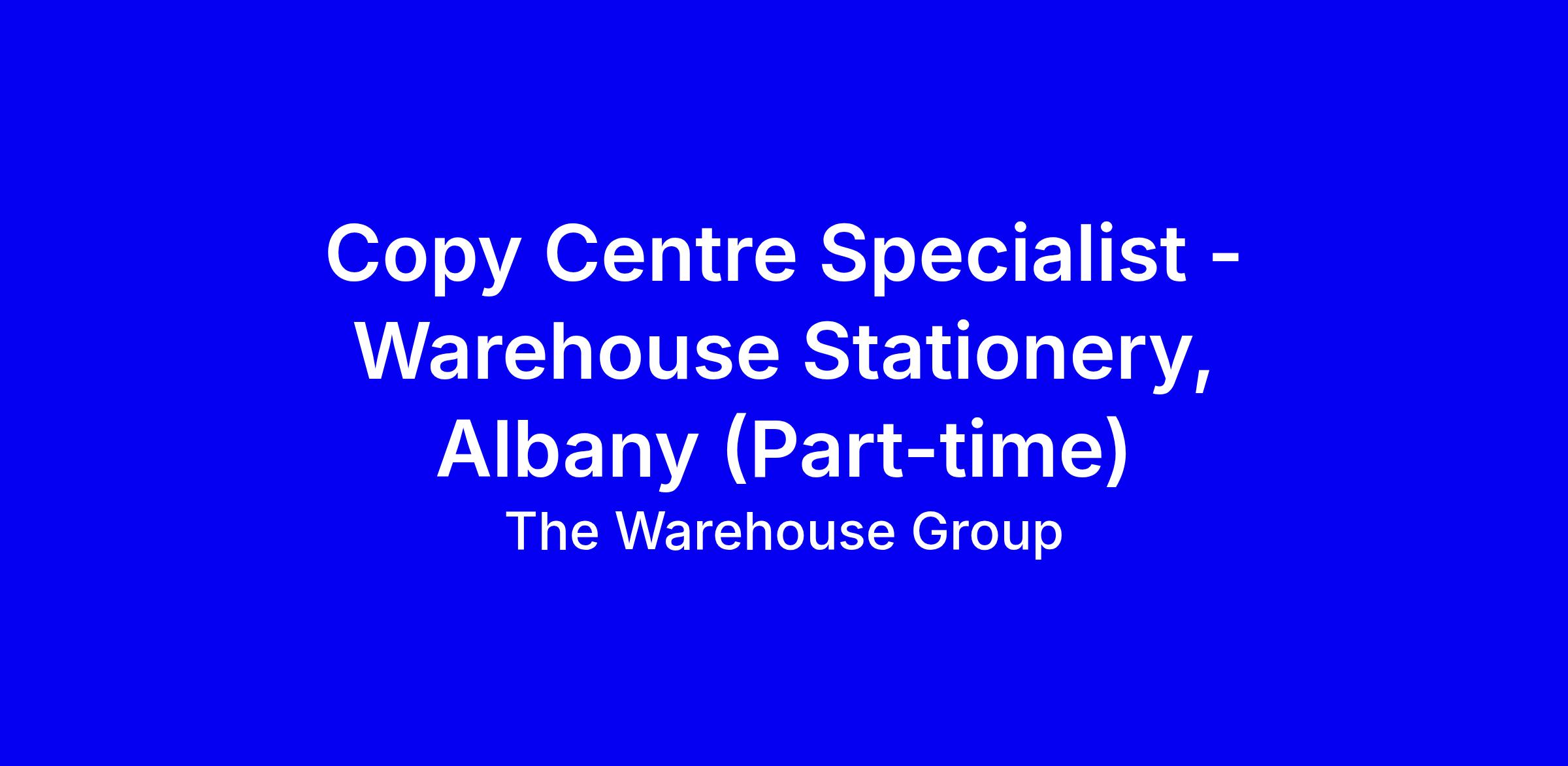Warehouse Stationery Albany is looking for a part-time Copy Centre Specialist to join our store team on Thursday 11:00am-18:00pm and Friday 09:00am-18:00pm, onsite in Auckland. You’ll be the go to person for copy and print needs, handling photocopying, binding, PDF manipulation, graphics and a range of print tasks to help customers do more. A positive service mindset, solid communication, and attention to detail are what we value most; retail experience helps but isn't essential, and being on your feet for long periods is not a deal breaker. We offer career growth, generous staff discounts, volunteer and birthday leave, and a collaborative, supportive culture. To apply, showcase your willingness to learn, examples of teamwork, and how you’ve made customer experiences easier and more enjoyable.