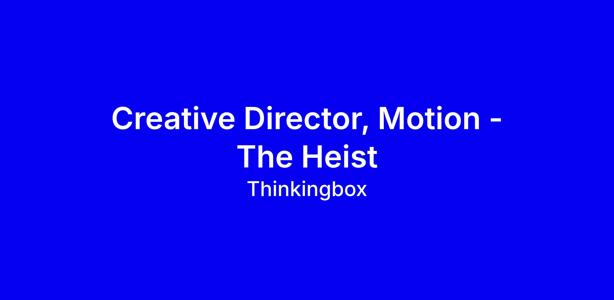The Heist, Thinkingbox’s motion design arm, is seeking a hands-on Creative Director, Motion in Toronto to lead a nimble team delivering high impact 2D and 3D campaigns. You’ll own creative direction, storyboard and styleframe development, oversee assets from concept to delivery, and partner with clients on the project lifecycle while helping with budgeting and workflows. Bring 8+ years in motion design with at least 3 in leadership, mastery of Cinema 4D and Redshift, plus After Effects and the Adobe suite, and a strong eye for storytelling. Your portfolio should show varied marketing work and leadership. Apply with resume and portfolio links; due to volume, not all submissions are answered, but all are kept for future opportunities and The Heist values inclusivity.