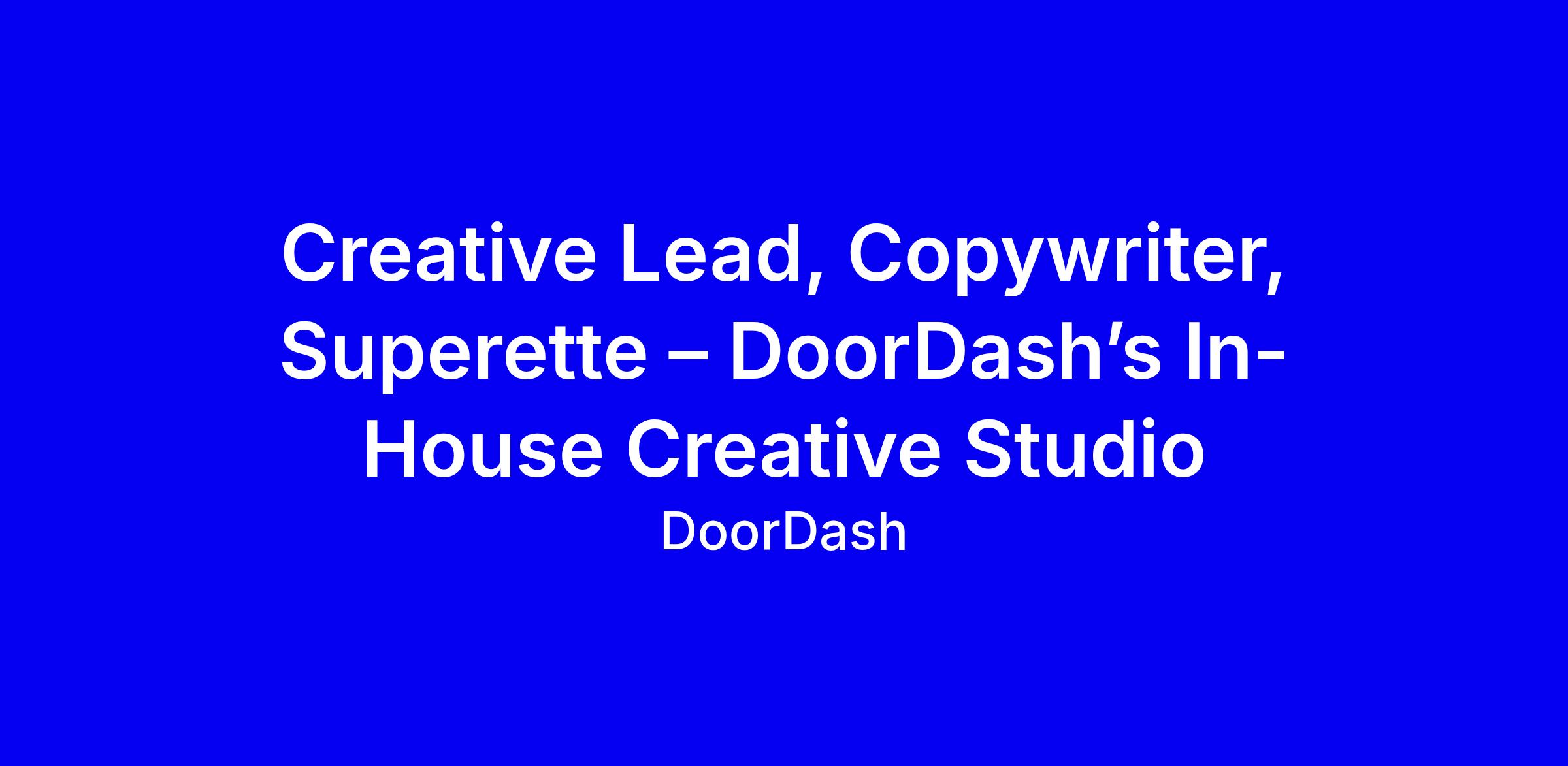 DoorDash’s Superette is hiring an ideas-first Creative Lead, Copywriter who will own concepts from start to finish, shaping campaigns that move fast and leave a cultural footprint. The role blends storytelling craft with hands-on production across TV, social, activations, and product experiences, with a bias toward bold, cohesive voice and cross-team collaboration, you’ll embrace AI as a creative tool and work without pitches or timesheets. What matters most: a portfolio of smart, culture-driving work, a track record of leading high-impact campaigns, and an ability to push boundaries while sustaining brand aesthetic. Highlight collaboration with writers, designers, and strategists, and demonstrate proactive leadership in remote, fast-paced, US-only environments.