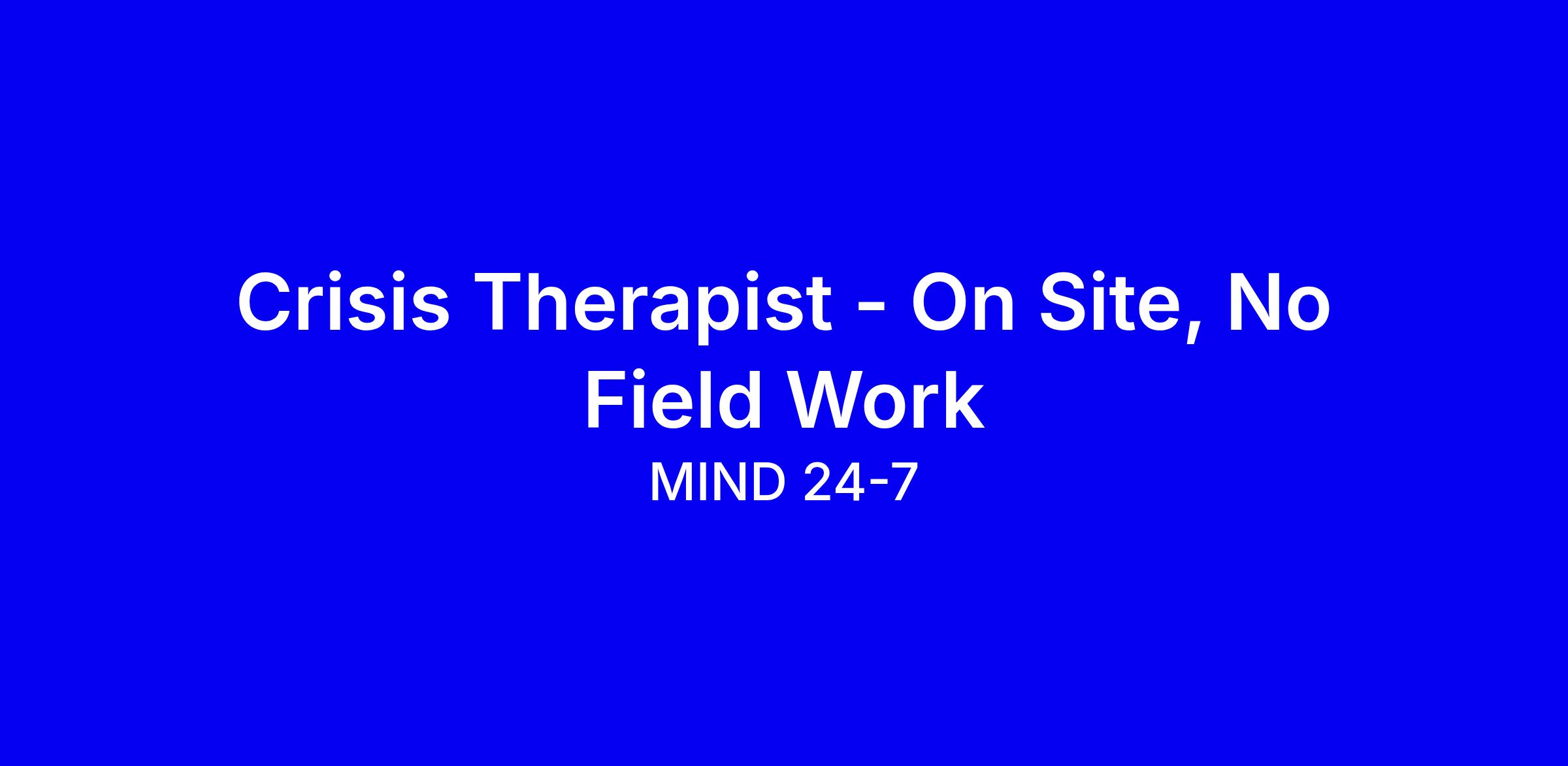 Crisis Therapist – LAC, LPC, LMSW, LCSW - No Field Work