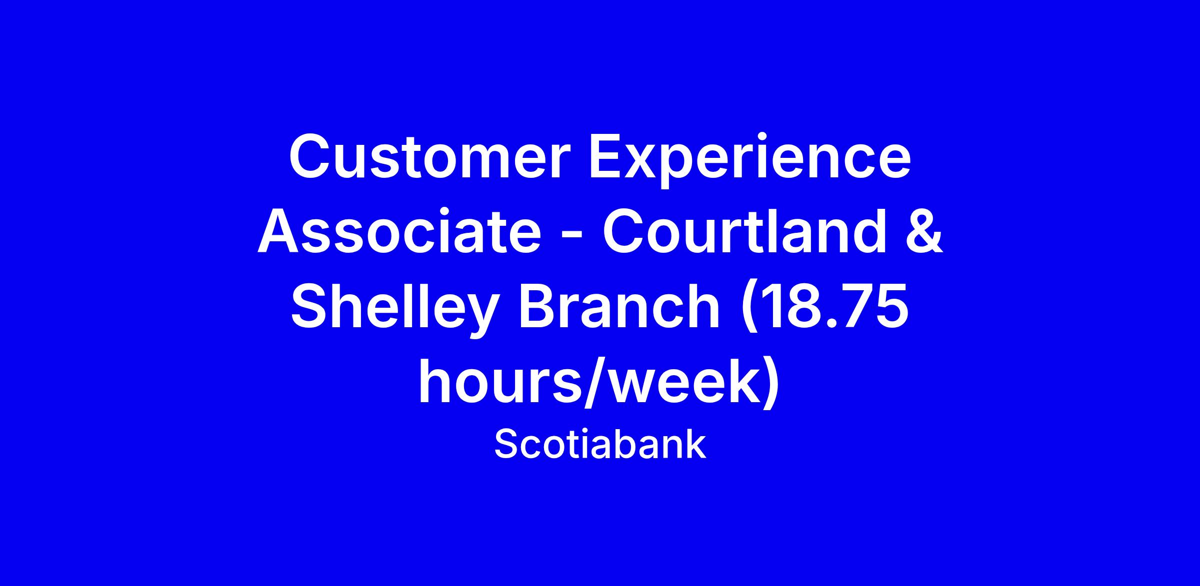 Scotiabank is hiring a Customer Experience Associate for the Courtland & Shelley branch in Kitchener, 18.75 hours per week, onsite, requisition ID 243030. You’ll be the lobby lead, delivering top-notch service, spotting simple sales opportunities such as opening accounts and GICs, and helping clients navigate digital banking tools while building lasting relationships. The role rewards relationship building, clear explanations, teamwork, and meeting performance targets. The ideal candidate has strong customer service, is comfortable with proactive outreach, flexible scheduling, and, ideally, banking experience. To apply, submit online with a tailored resume that highlights relevant service, sales, and tech skills, plus availability and willingness to grow.