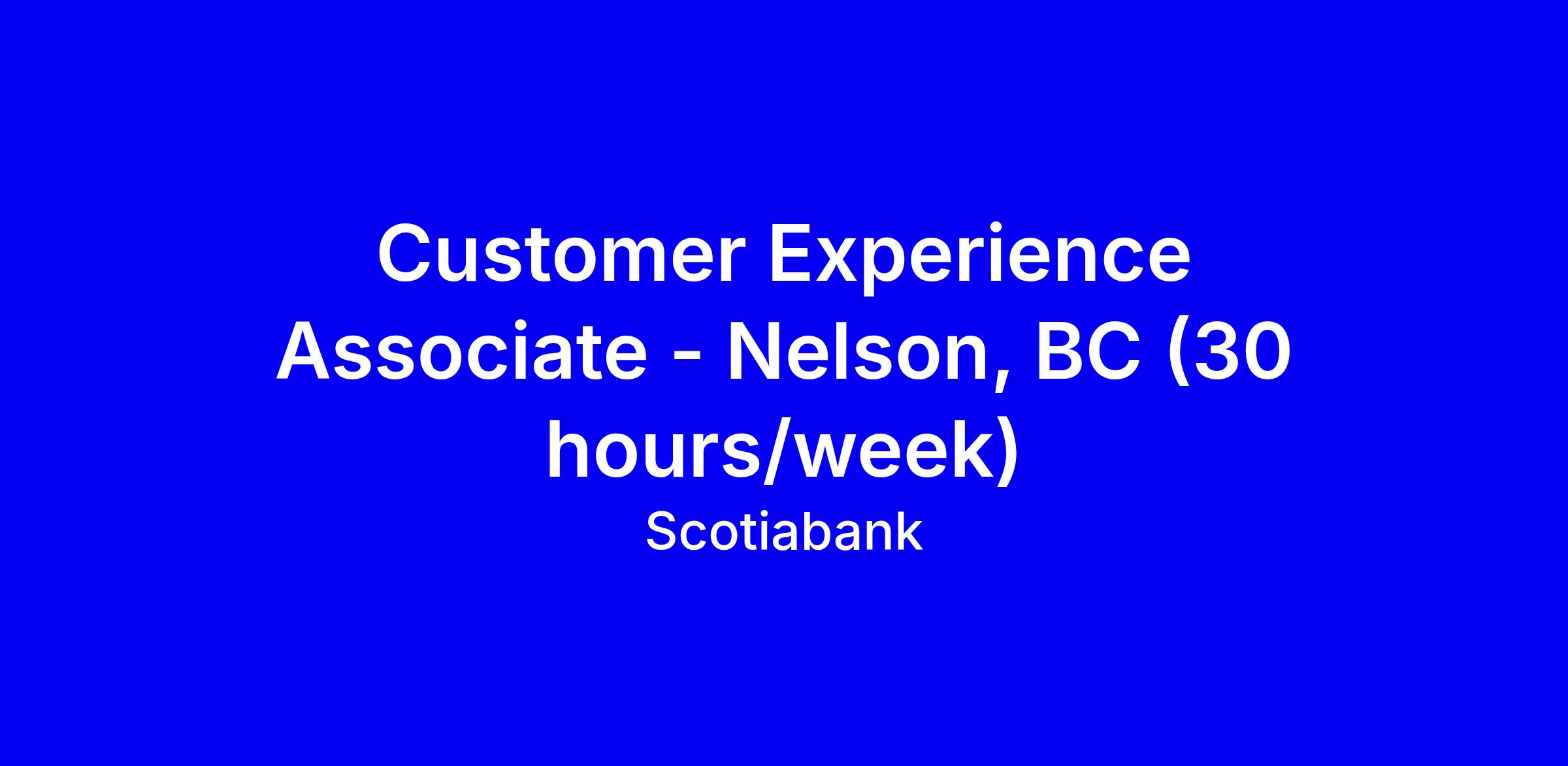 Scotiabank is seeking a Customer Experience Associate in Nelson BC, 30 hours per week, onsite, to be the welcoming face of the branch and help customers reach their financial goals. You will build strong relationships, uncover needs, process everyday transactions, and promote digital banking options while contributing to branch targets with simple sales opportunities. The right candidate has proven customer service skills, a friendly and efficient manner, flexibility for shifts, comfort with basic sales, and solid tech know how. Apply online with Requisition ID 250580, highlighting customer impact, community involvement, and a willingness to learn in a collaborative, development focused environment. Internal training and competitive compensation await.