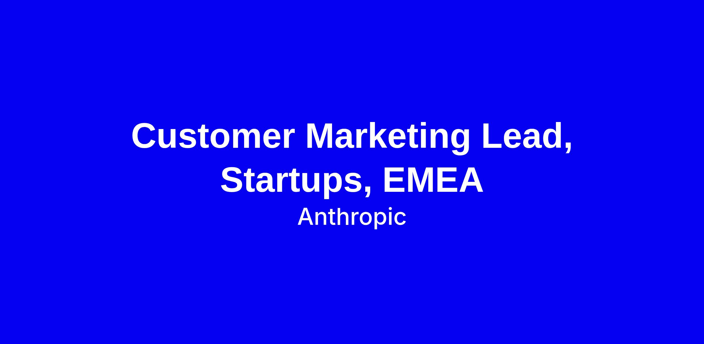 Anthropic is hiring a Customer Marketing Lead for Startups in EMEA to build and scale the regional customer marketing function, crafting founder and developer success stories, coordinating co marketing with high growth startups, and orchestrating moments that deepen ties to engineering and technical leaders across Europe. You’ll fuse storytelling with startup ecosystem programming to drive advocacy, expansion, and community growth for Claude. The ideal candidate has 6+ years in B2B SaaS marketing in EMEA, a track record launching advocacy programs from scratch, and credibility with technical founders. Tips: spotlight measurable outcomes, demonstrate segmentation and high touch plus scalable programs, show relocation readiness to London, and note visa sponsorship experience. Rolling reviews.