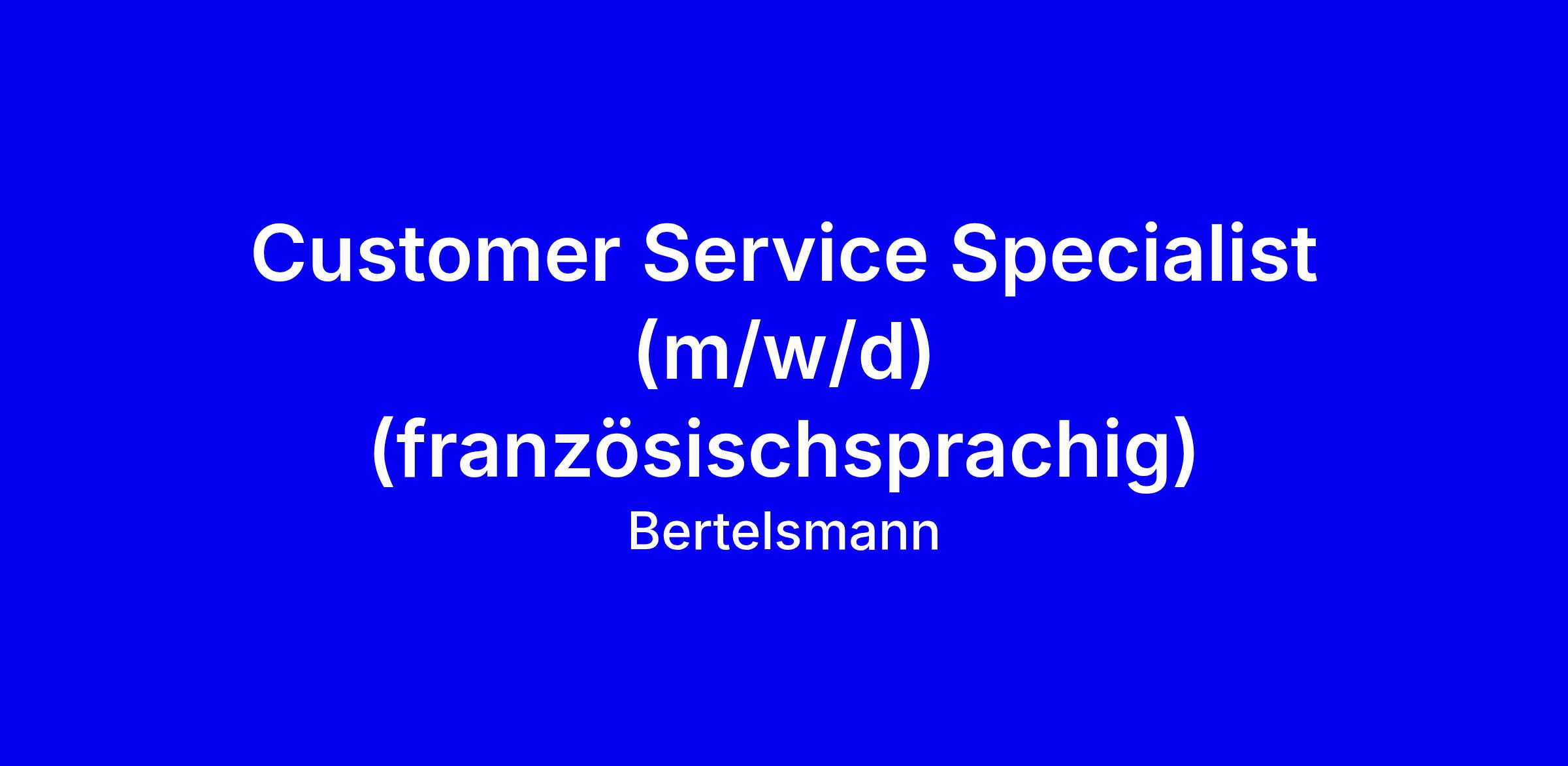 Customer Service Specialist (französischsprachig)