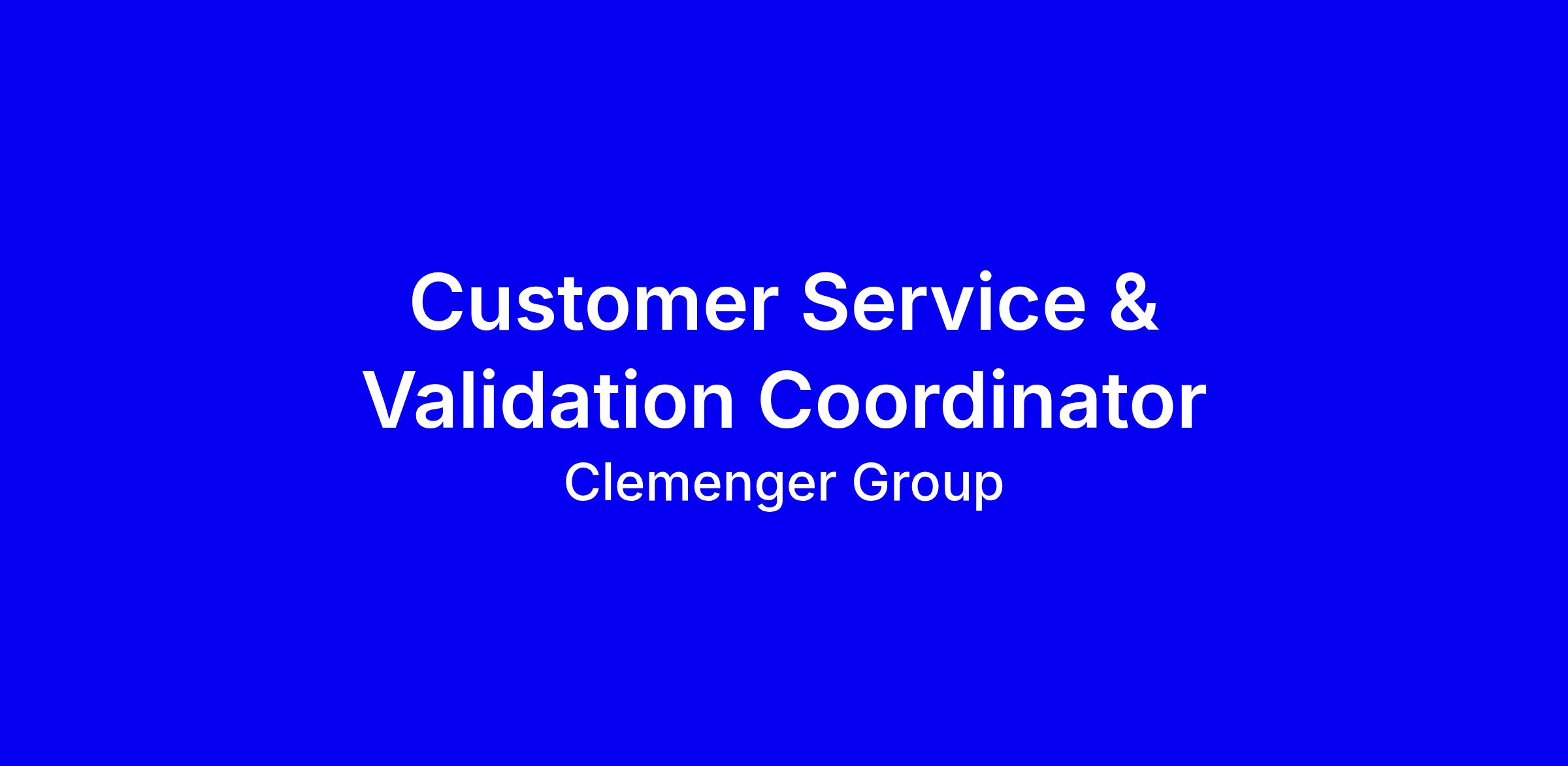 We are searching for a confident and detail-focused Customer Service & Validation Coordinator to join our Customer Experience (CX) team