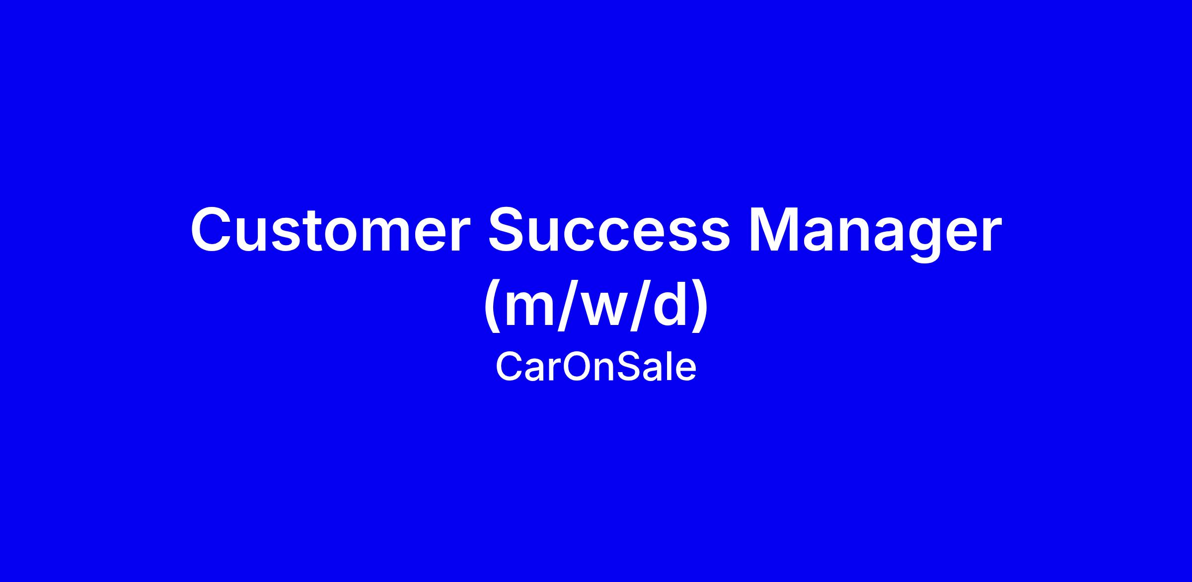 Du willst mehr als nur einen Job? Du willst Innovation vorantreiben, Verantwortung übernehmen und wirklich mitgestalten? Bei CarOnSale bist du mittendrin: Als Customer Success Manager:in gestaltest du an den wichtigsten Schnittstellen – bei unseren Kunden, in Sales, After Sales und Operations – und prägst den Erfolg unseres dynamischen Tech-Unternehmens. Du verantwortest die Onboardings unserer Großkunden, steuerst proaktiv komplexe End-to-End Prozesse und setzt analytisch und operativ Projekte um, die wirklich etwas bewegen. Deine Ideen werden geschätzt, und dein Einsatz bringt sofort sichtbare Ergebnisse.
