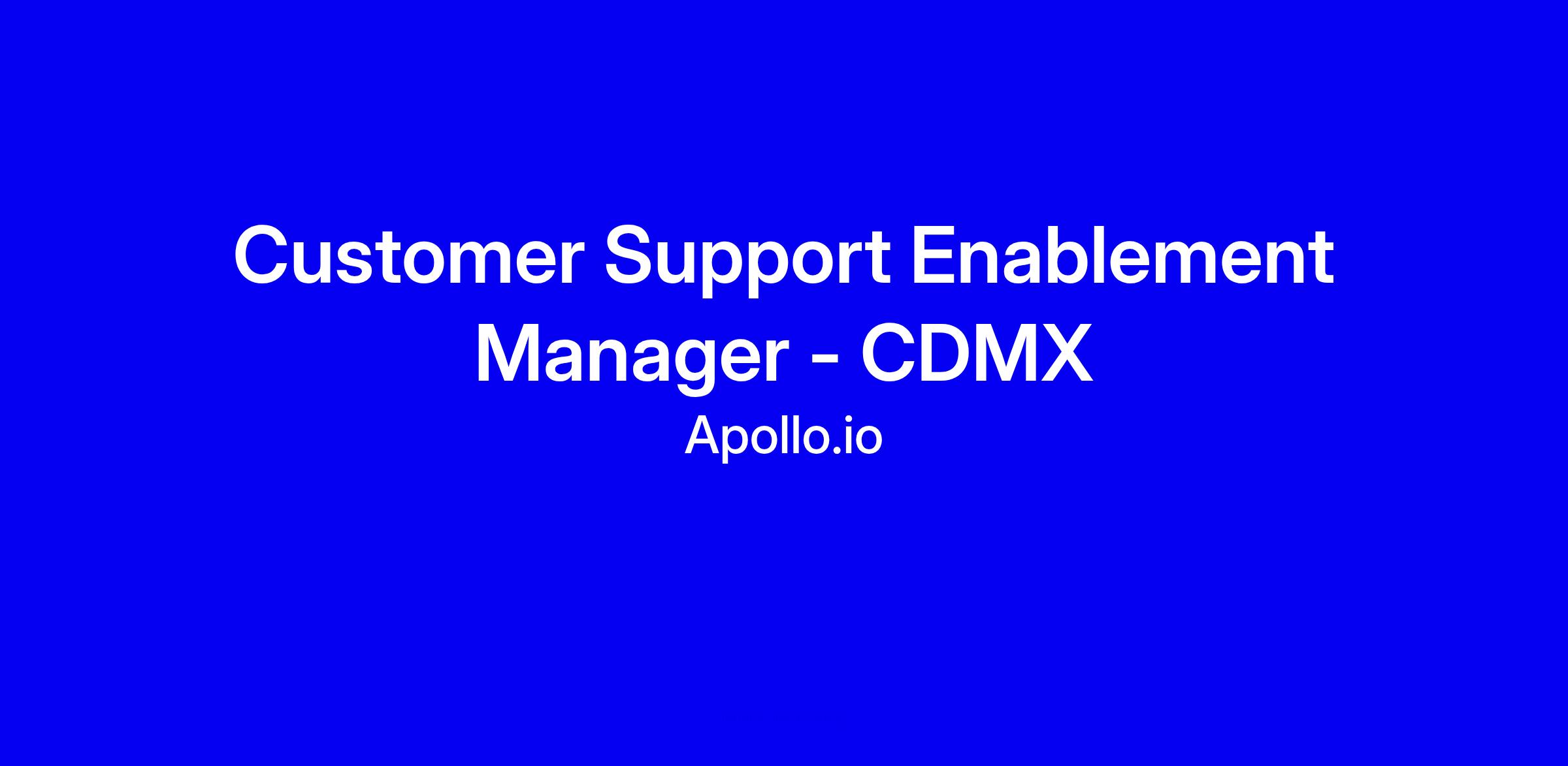 Apollo.io is hiring a strategic Customer Support Enablement Manager in CDMX to own onboarding for customers and the enablement of a scalable global support team. You’ll manage 30 to 40 onboarding customers, lead a 6-week Mexico City new-hire program, and drum up scalable enablement through live training, async content, and certifications, while partnering with the US Everboarding Manager to align training with CSAT, QA, product changes, and metrics. The role requires 5+ years in SaaS enablement, bilingual Spanish-English, strong facilitation and cross-functional collaboration, plus experience with integrations (SFDC, HubSpot, Marketo, Zapier) and CS tooling (Vitally). To apply, quantify impact on your resume, share onboarding playbooks and demos, and show time-zone flexibility and cross-locale collaboration.