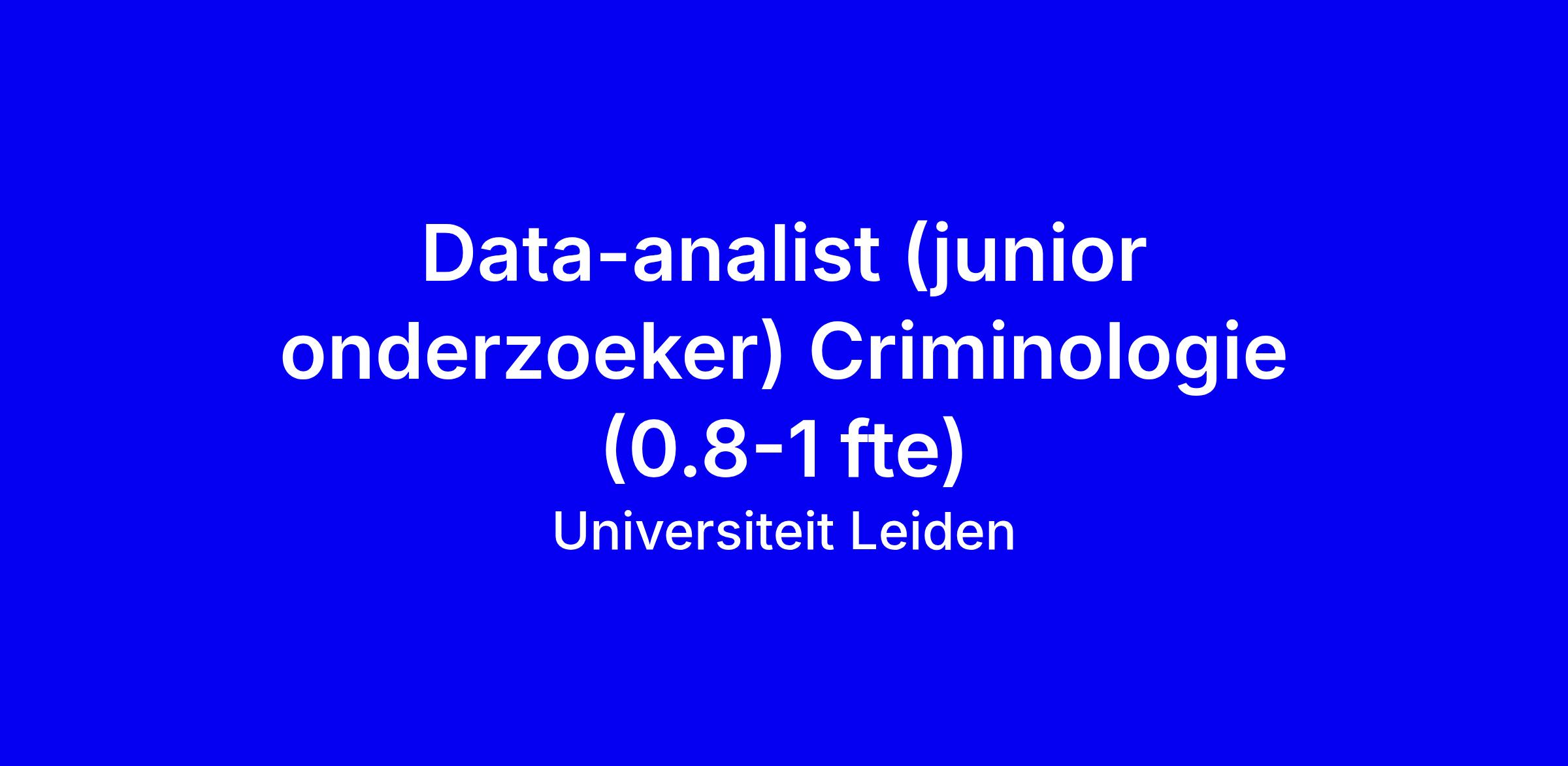 Universiteit Leiden zoekt een data-analist voor de Life in Custody studie, 0,8-1 fte, van juni tot en met november 2026 met mogelijke verlenging. Je draagt bij aan een nationaal surveyonderzoek in gevangenissen door aansprekende data-visualisaties te maken, een interactief dashboard te ontwerpen, datasets voor openbare publicatie voor te bereiden en te helpen bij opschoning en analyses. Gewenst profiel: bijna afgeronde master in data science of vergelijkbaar, ervaring met PowerBI, Tableau of R Shiny, Python een pré, en een creatieve, nauwkeurige aanpak. Belangrijk is de brug tussen wetenschap en praktijk en goede samenwerking. Ook als je niet aan alle eisen voldoet, nodigen we je uit te solliciteren. Salaris 3546-5538 bruto bij fulltime, OV-reiskosten, ABP-pensioen; solliciteren tot 27 maart, meer info via Sophie Martens.